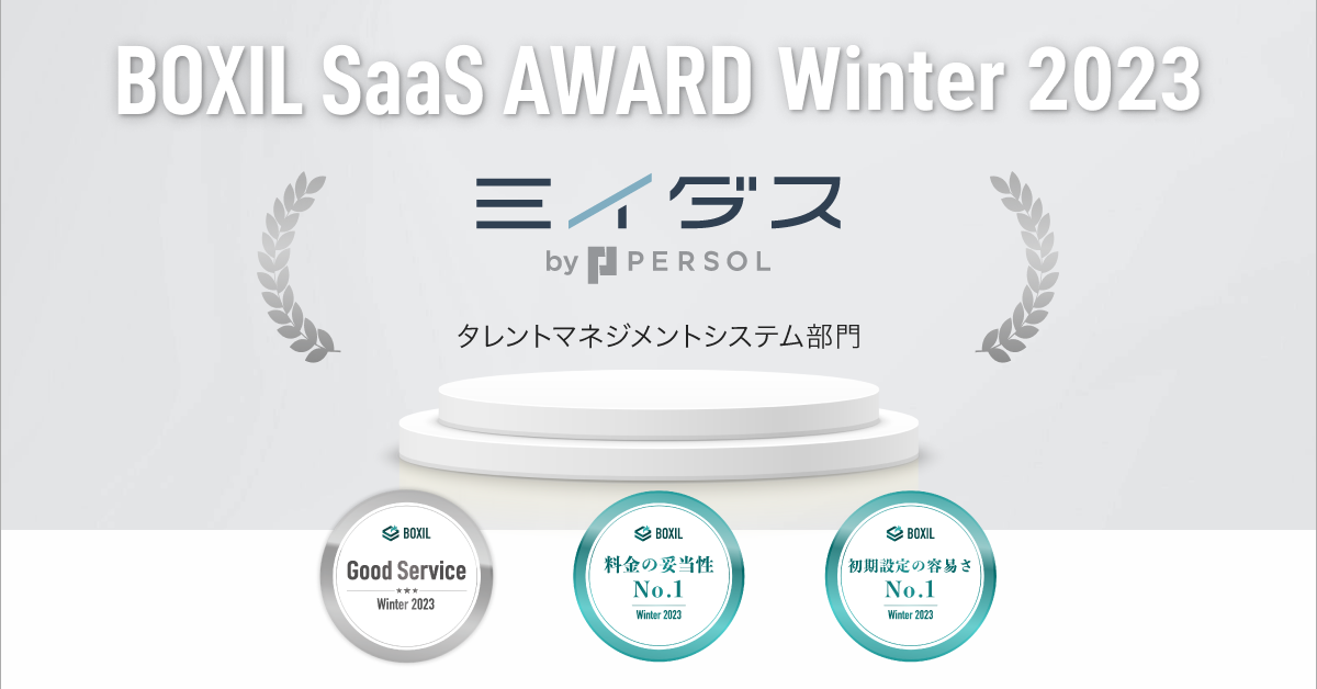 中途採用サービス『ミイダス』、「BOXIL SaaS AWARD Winter 2023」タレントマネジメントシステム部門において3項目で3期連続選出