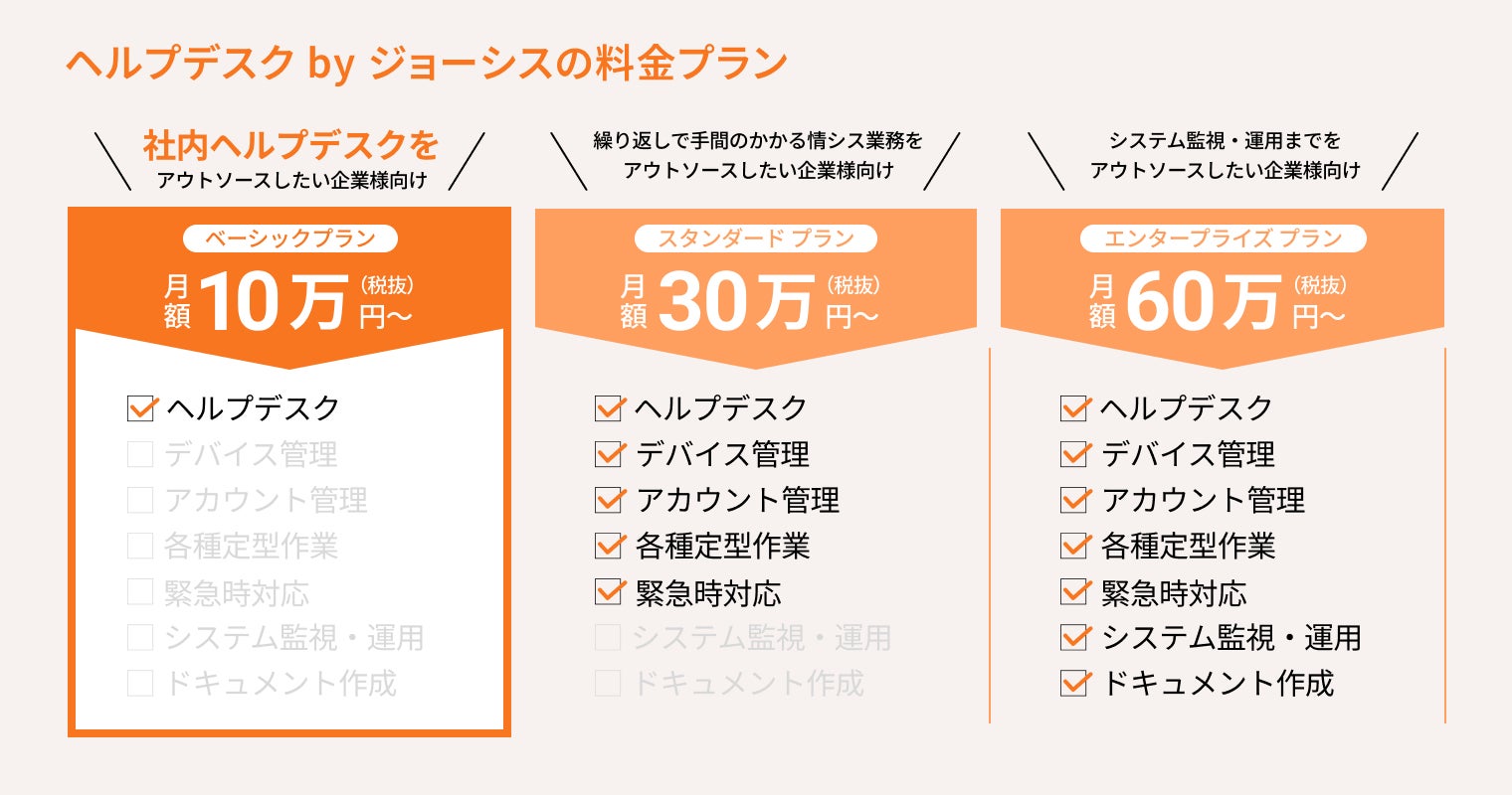 「ヘルプデスク by ジョーシス」各プランのサービス内容と料金プランについて