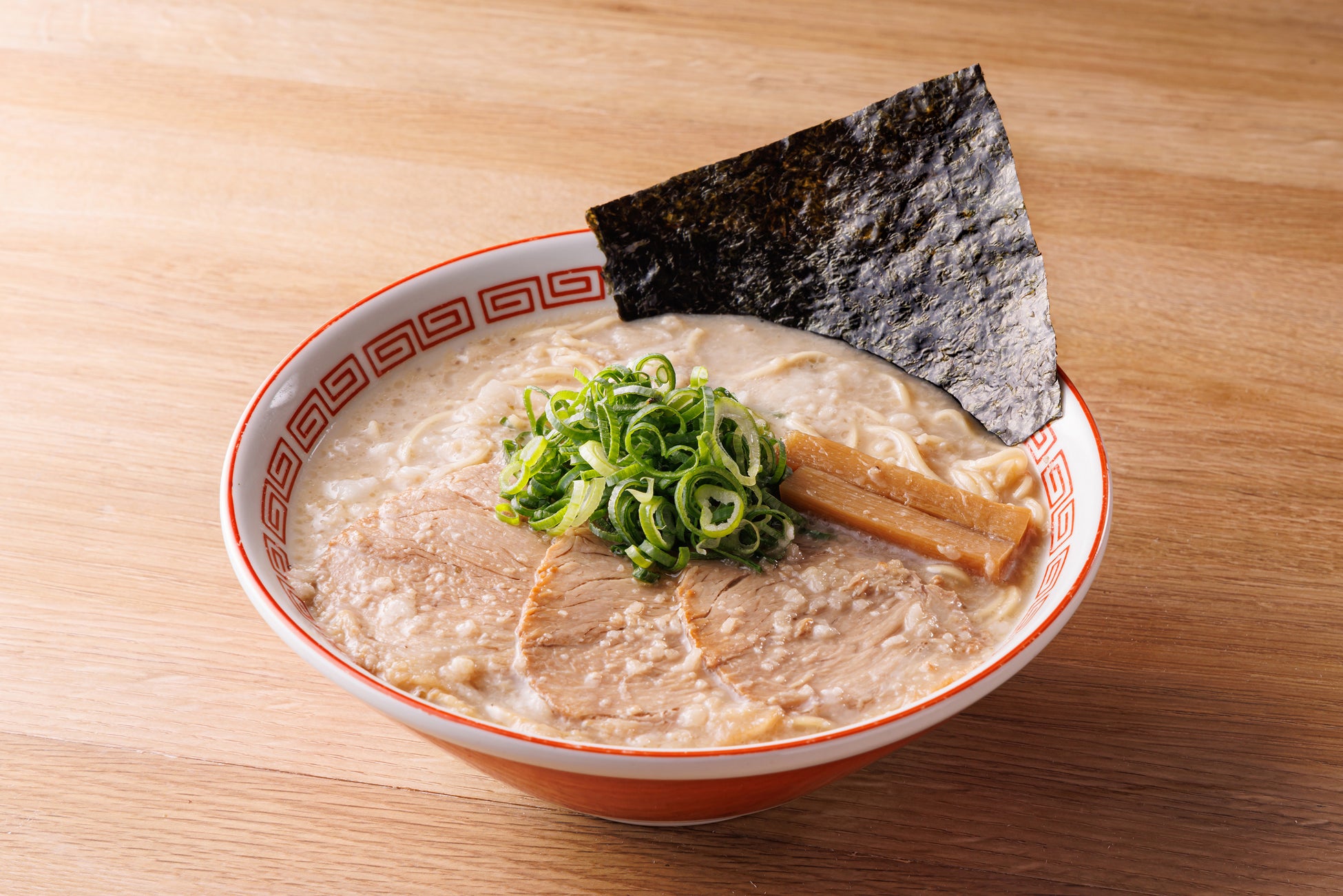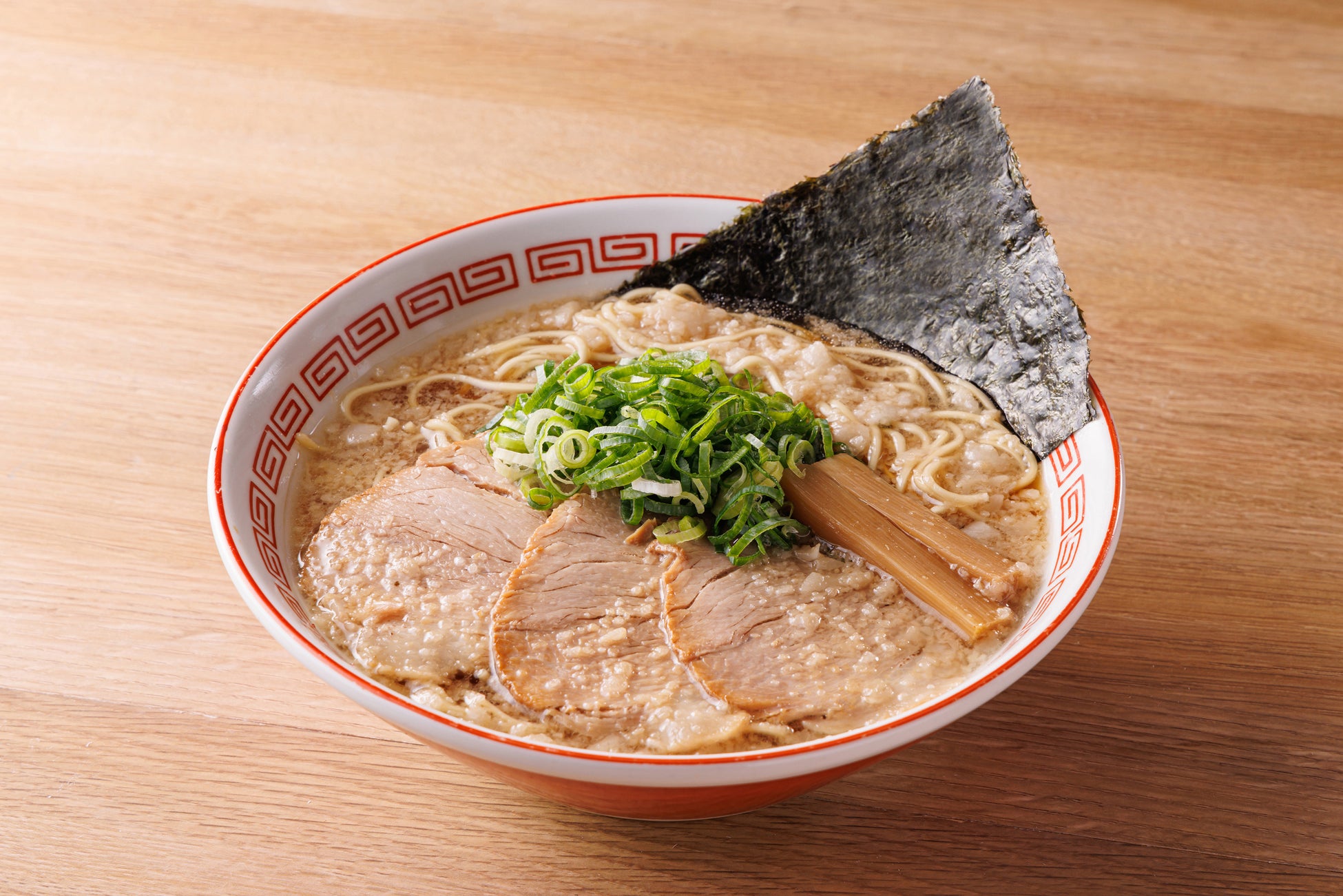 濃厚とんこつと鶏青湯のダブルスープに、広がる背脂のコク 、濃厚マイルドなこってりタイプ。 卓上の調味料でやみつき度UPの一品。