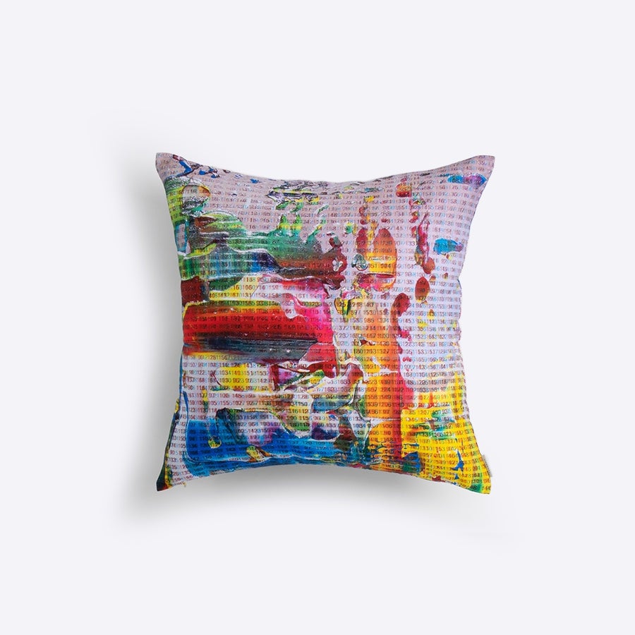 45×45cmのクッションカバー。素材には上質なオックスコットンを100%使用。日本国内で一貫生産しており、アート作品の美しさや機微な表現を最大限に引き出しつつ、肌ざわりも滑らかな高品質のクッションカバーです。