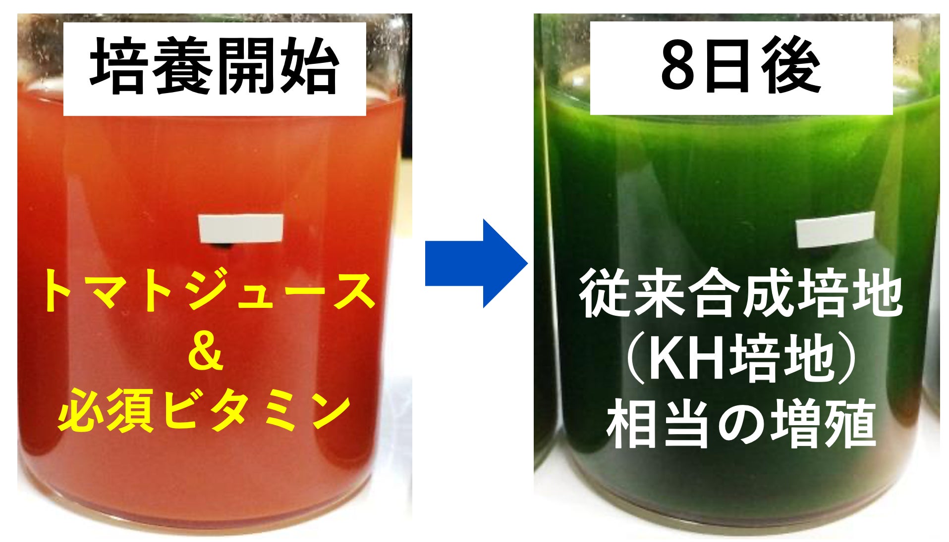 東京理科大学理学部第一部物理学科の山下恭平助教、徳永英司教授、株式会社ユーグレナの鈴木健吾氏、山田康嗣氏らの研究グループは、食品として注目されるユーグレナ(Euglena gracilis)の培養方法について研究を行い、市販のトマトジュースを水で希釈し、ユーグレナの生育に必須のビタミン2種(B1、B12)を添加したのみの培地で、従来の培地と同じくらい良好にユーグレナを培養できることを見出しました。