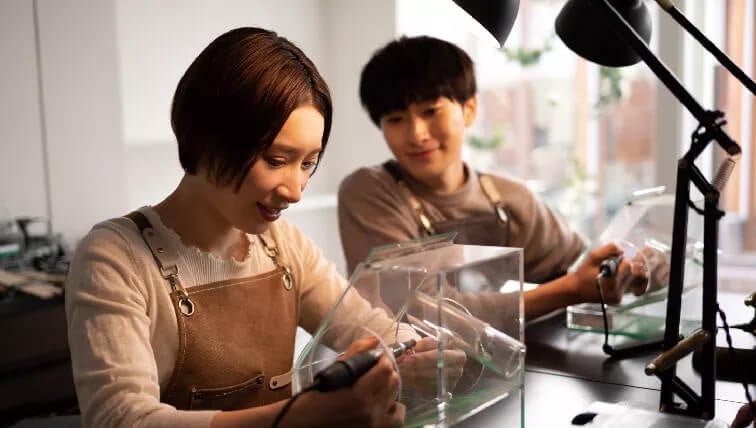 「icci 代官山」では、素材やデザイン、仕上げに至るまで全てをお客様自身で選び、大切な方と共に理想の指輪を手作りする特別な体験をご提供しています。静かなアトリエで、これからを共にする指輪を最愛の人と一緒に作る時間は、心に深く刻まれる特別な思い出となるでしょう。また、シンプルなデザインであれば当日お持ち帰りも可能です。出来立ての指輪をすぐに身に着けられるのも「icci 代官山」ならではの魅力です。