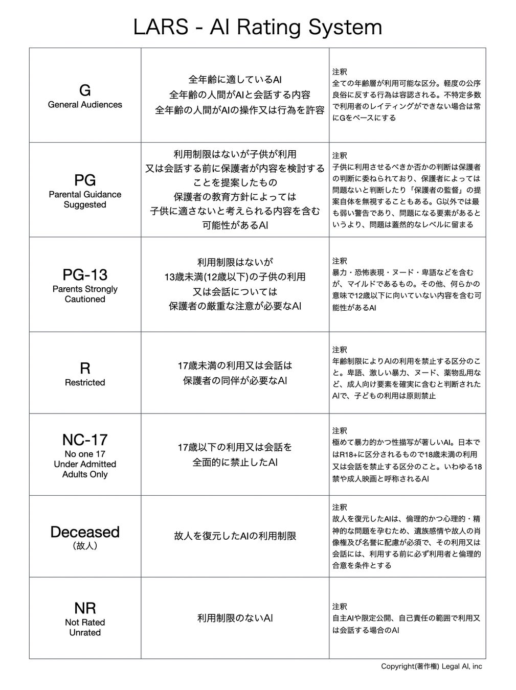 AI レインティングシステム (LARS - Legal AI Rating System)