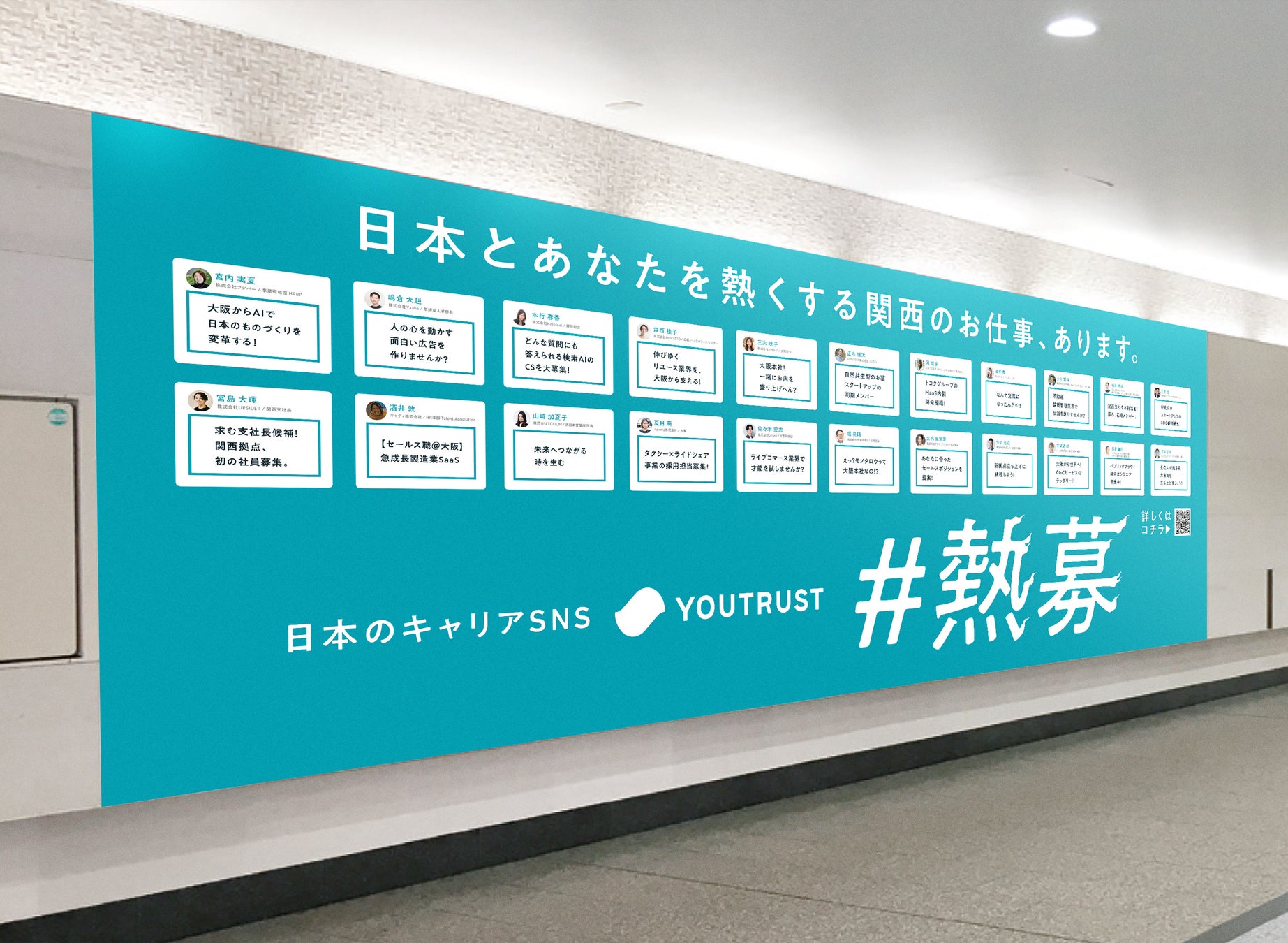 これまでは東京都内の主要駅を中心に掲出されてきましたが、YOUTRUST大阪事務所の立ち上げに際し、大阪で初めての「#熱募」企画が始動。当社の求人募集投稿が選出され、掲載されることとなりました。