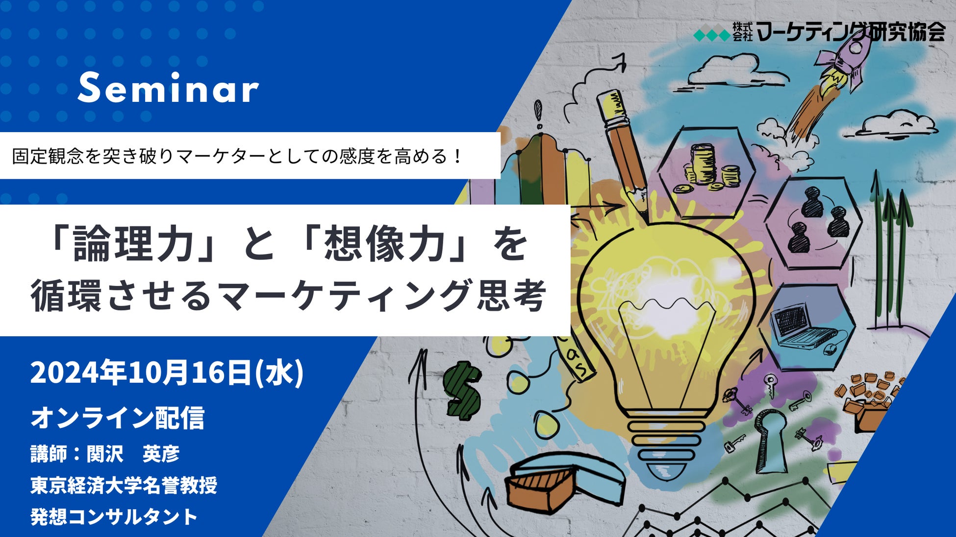 株式会社マーケティング研究協会は2024年10月16日オンラインセミナー「論理力」と「想像力」を循環させるマーケティング思考を開催します。本セミナーはアーカイブ動画での受講も可能です(期間限定)。
