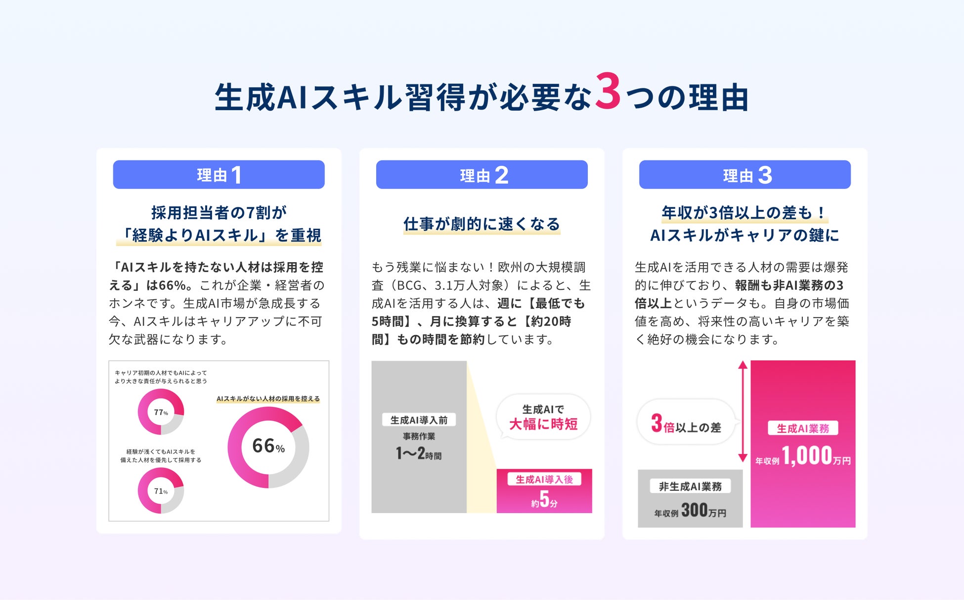 生成AIのスキル習得にご関心をお持ちの方は、ぜひ下記リンクより詳細をご確認ください。