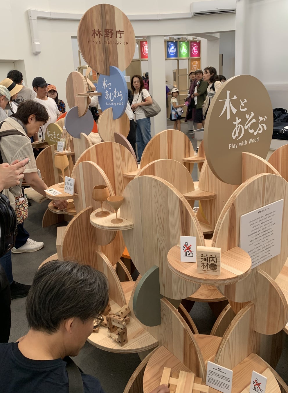 本イベントは、森林大国である日本の豊かな木材資源を活かして製作された、スギやヒノキ材を中心とした木材製品等に実際に触れていただくことにより、木材利用が、花粉の少ないスギへ植え替えによる花粉症対策、カーボンニュートラルへの貢献、SDGsの取り組み、自然災害防止などにつながることを、多くの方々に「体験」「実感」「共感」していただける内容となっています。