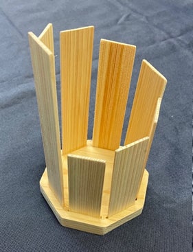 木についての楽しいクイズをした後、九州で生まれ育ったヒノキをサンドペーパーで磨き、組み立て自分だけのオリジナル円形木琴をつくります。完成した作品はお持ち帰りいただけます。