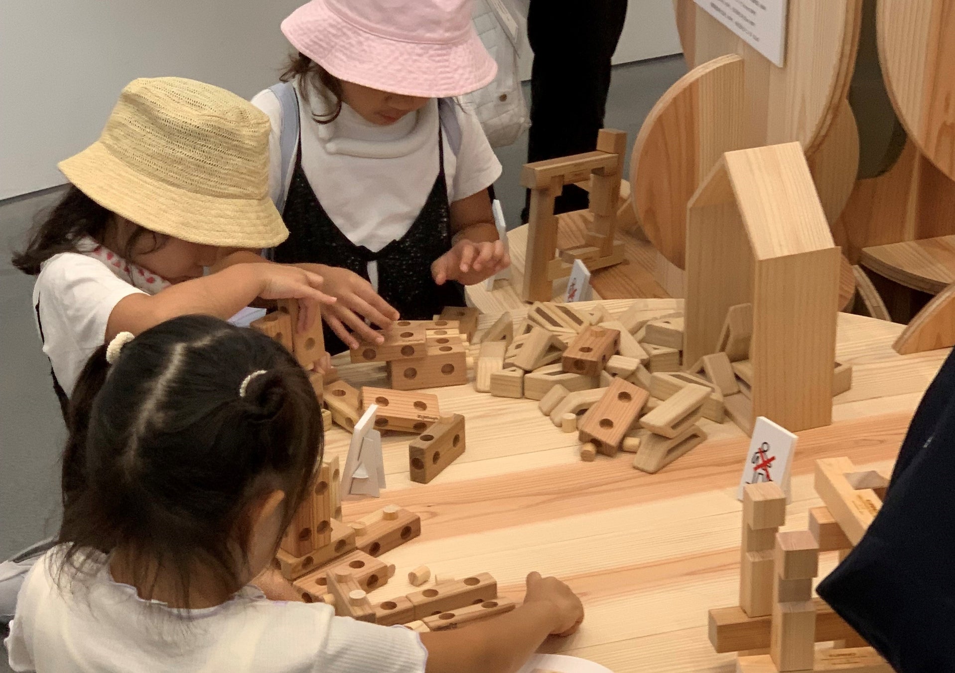 木の香りや手触りを体験できるコーナー、木製おもちゃで自由に遊べるコーナーを設置。木に直に触れ、その感触を楽しむことができます。