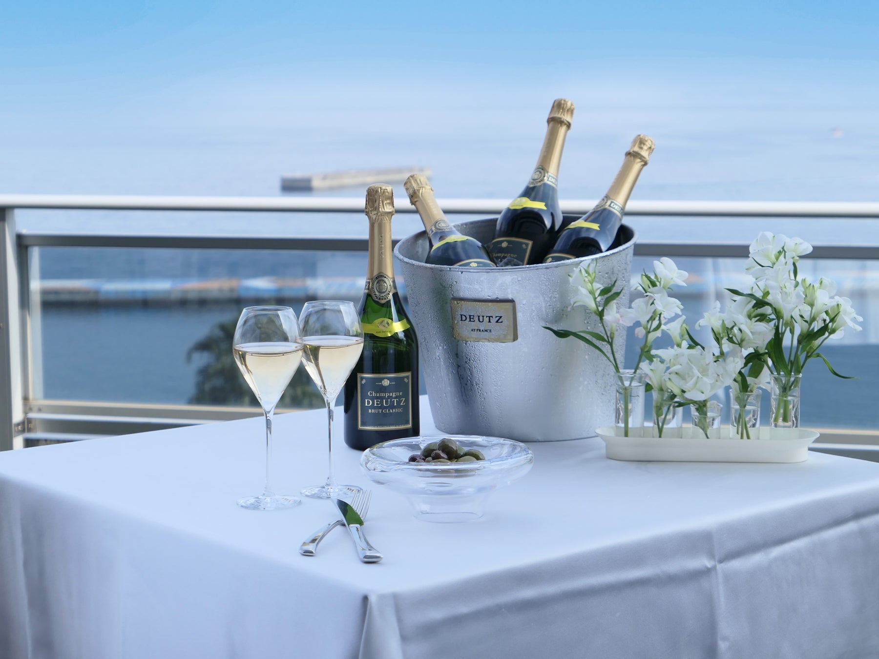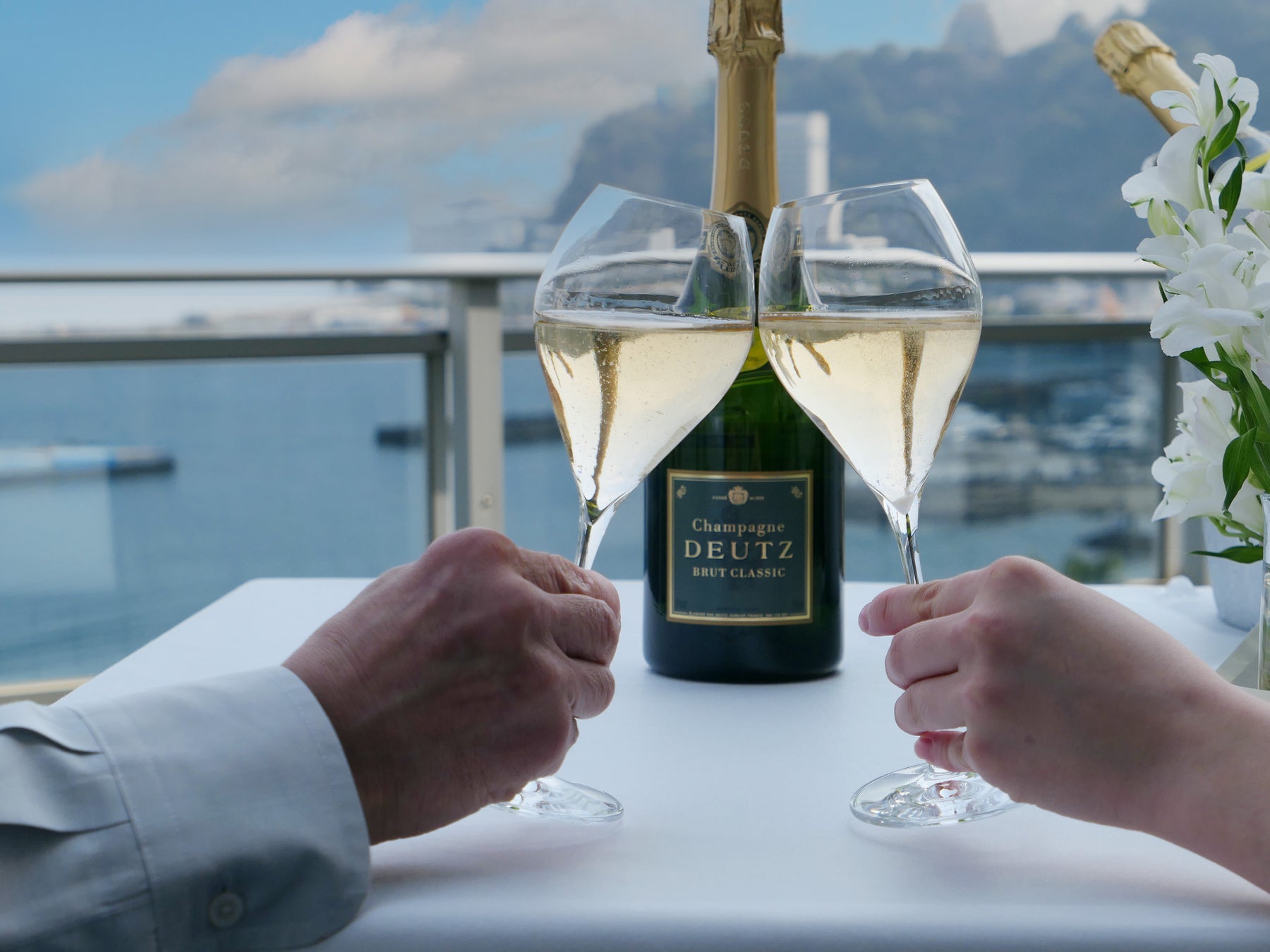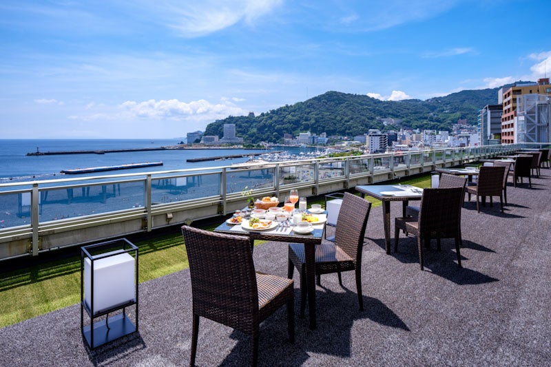 【熱海パールスターホテル】熱海湾がパノラマに望めるテラスでシャンパーニュフリーフロー