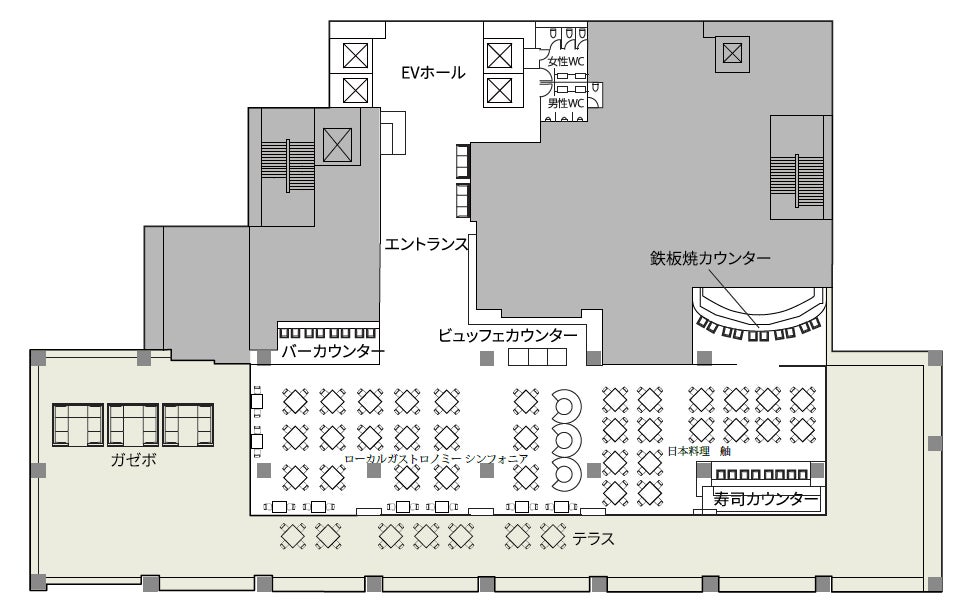 6F ローカルガストロノミー シンフォニア、日本料理 舳、鉄板焼 艫、寿司 舳