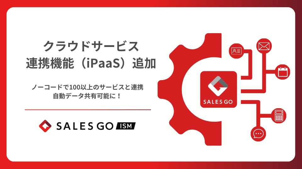 SFAとインサイドセールスで営業のデジタル化と売上アップを支援するSALES GO株式会社(所在地:東京都品川区、代表取締役社長:内山 雄輝、以下SALES GO)は、国内最新(※)SFA『SALES GO ISM』(読み:セールスゴーイズム)にノーコードで様々なクラウドサービスと連携できる機能(iPaaS)を追加しました。