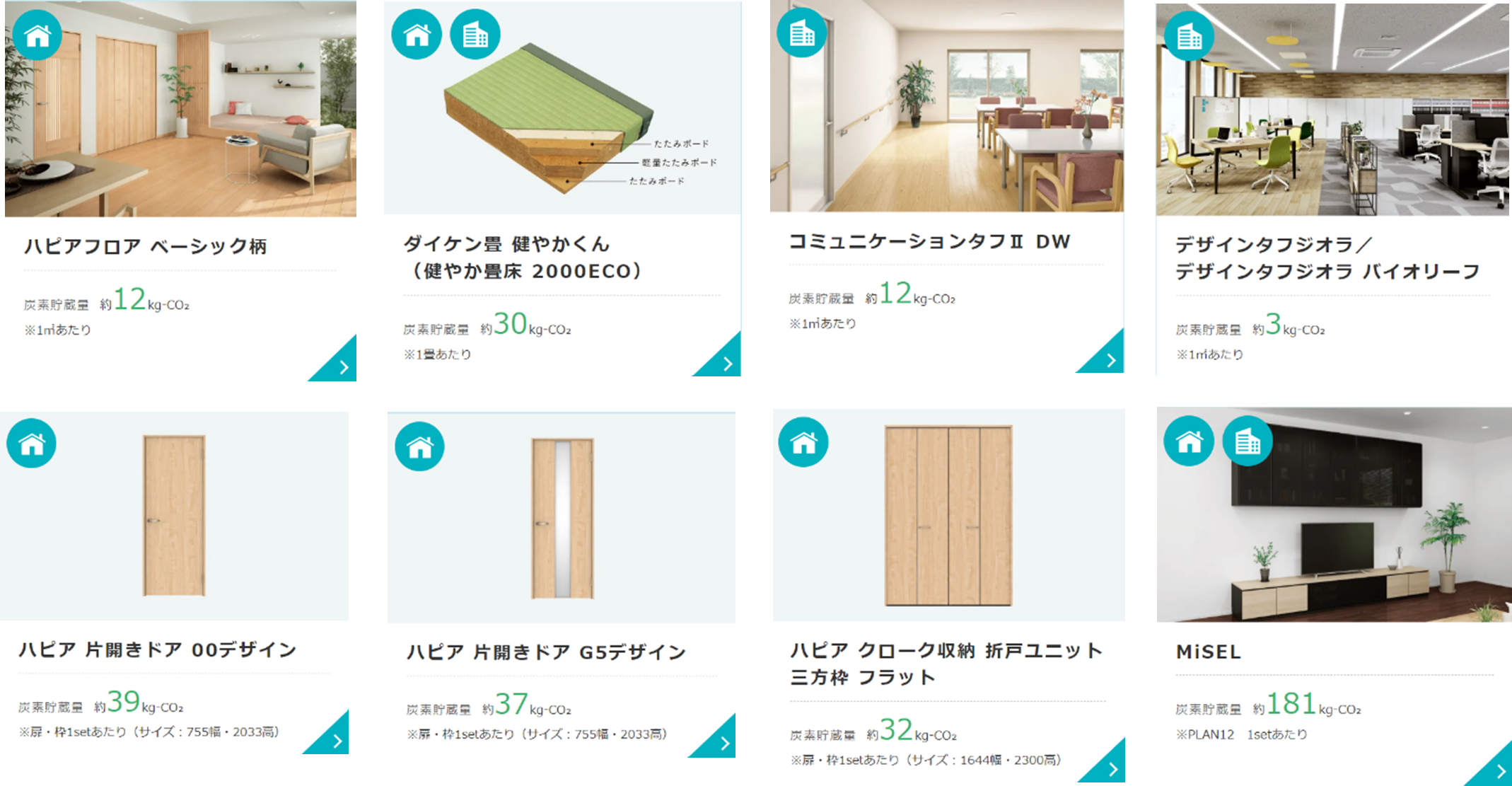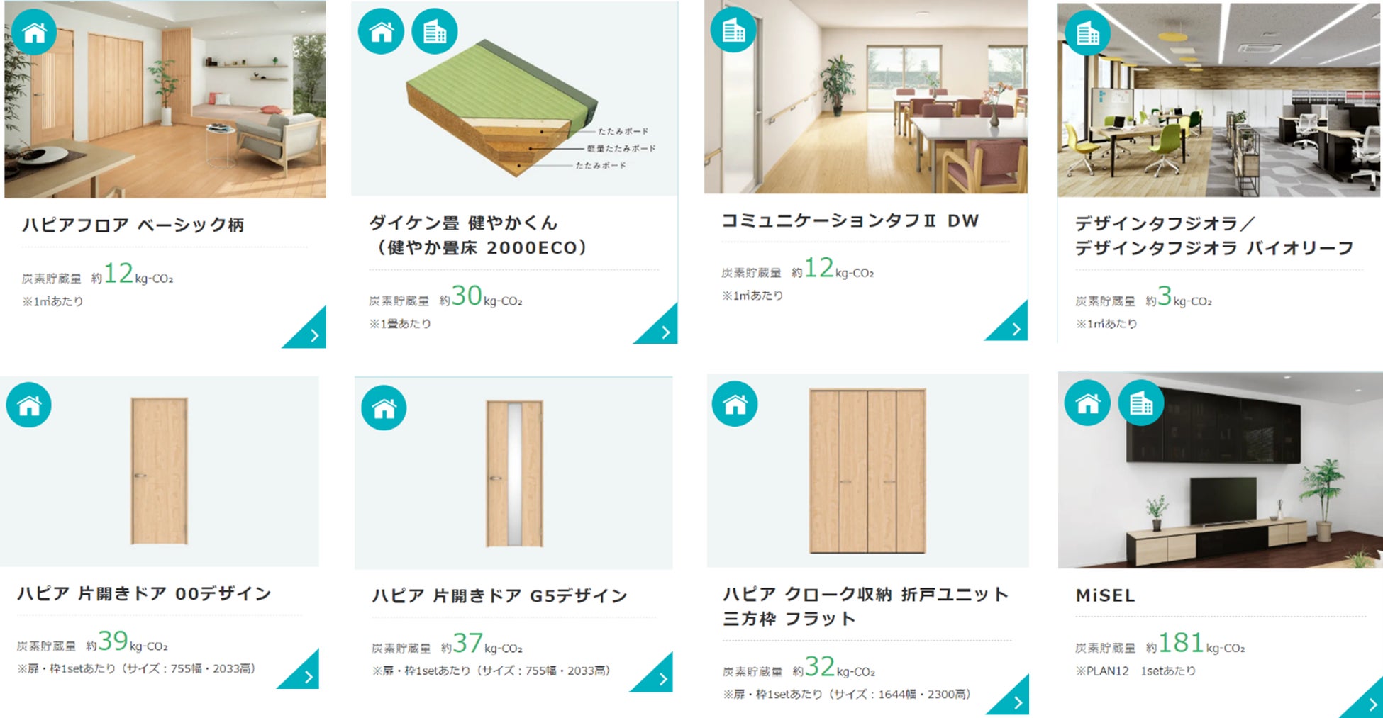 床材・室内ドアなどの主要製品の一部で炭素貯蔵量を開示