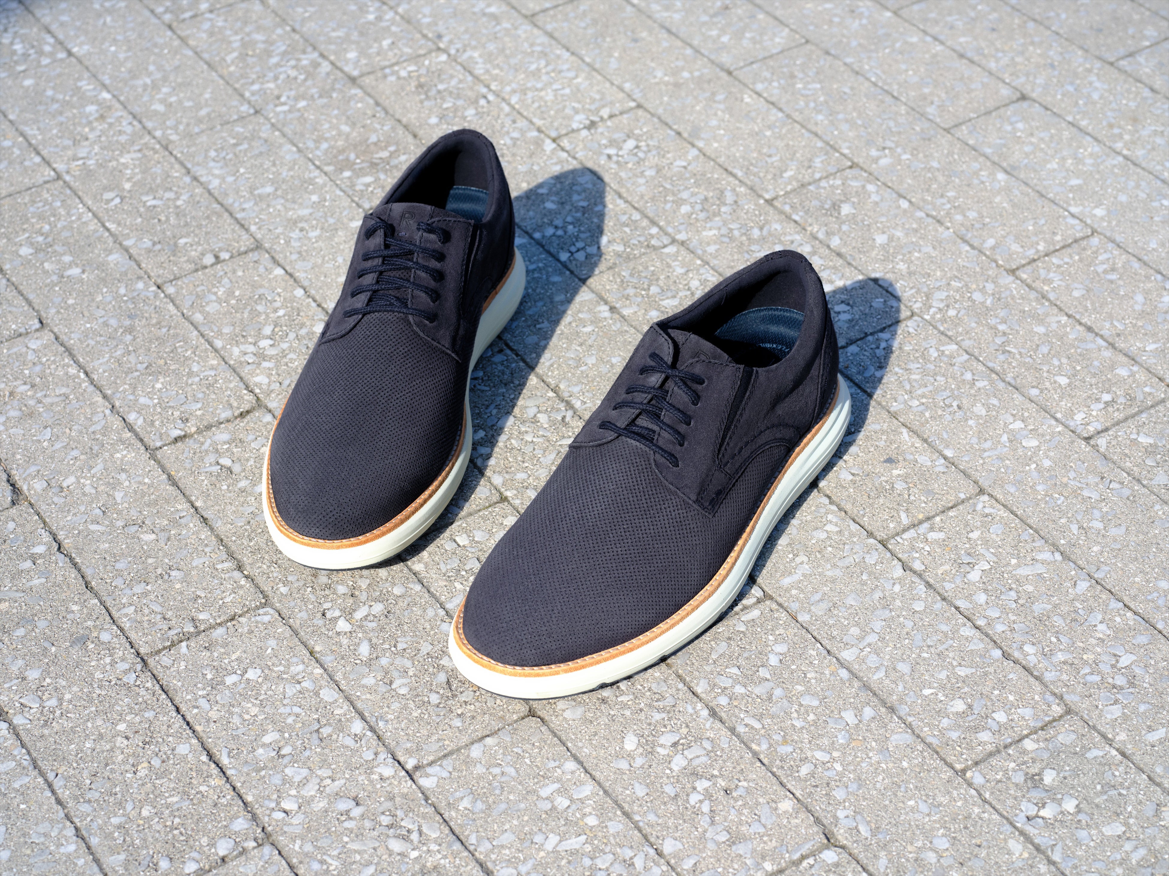 ビジネスカジュアルから休日のラフなスタイルまで、大人の足元を軽快に彩る一足。春の異素材スーツスタイルの一足としても、休日のデニムスタイルにも馴染む万能シューズです。