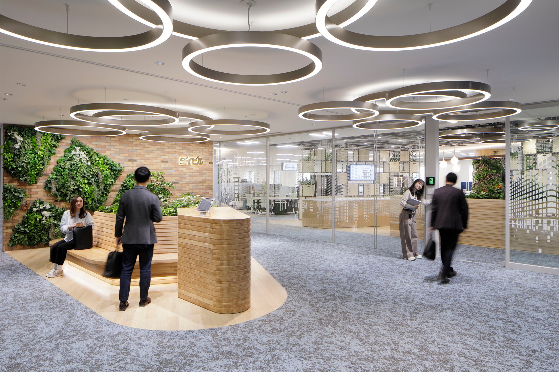 活気あふれる街並み・水辺の居心地の良さを表現し、「ダイビルの街創り」を感じてもらえるような空間デザインとしました。