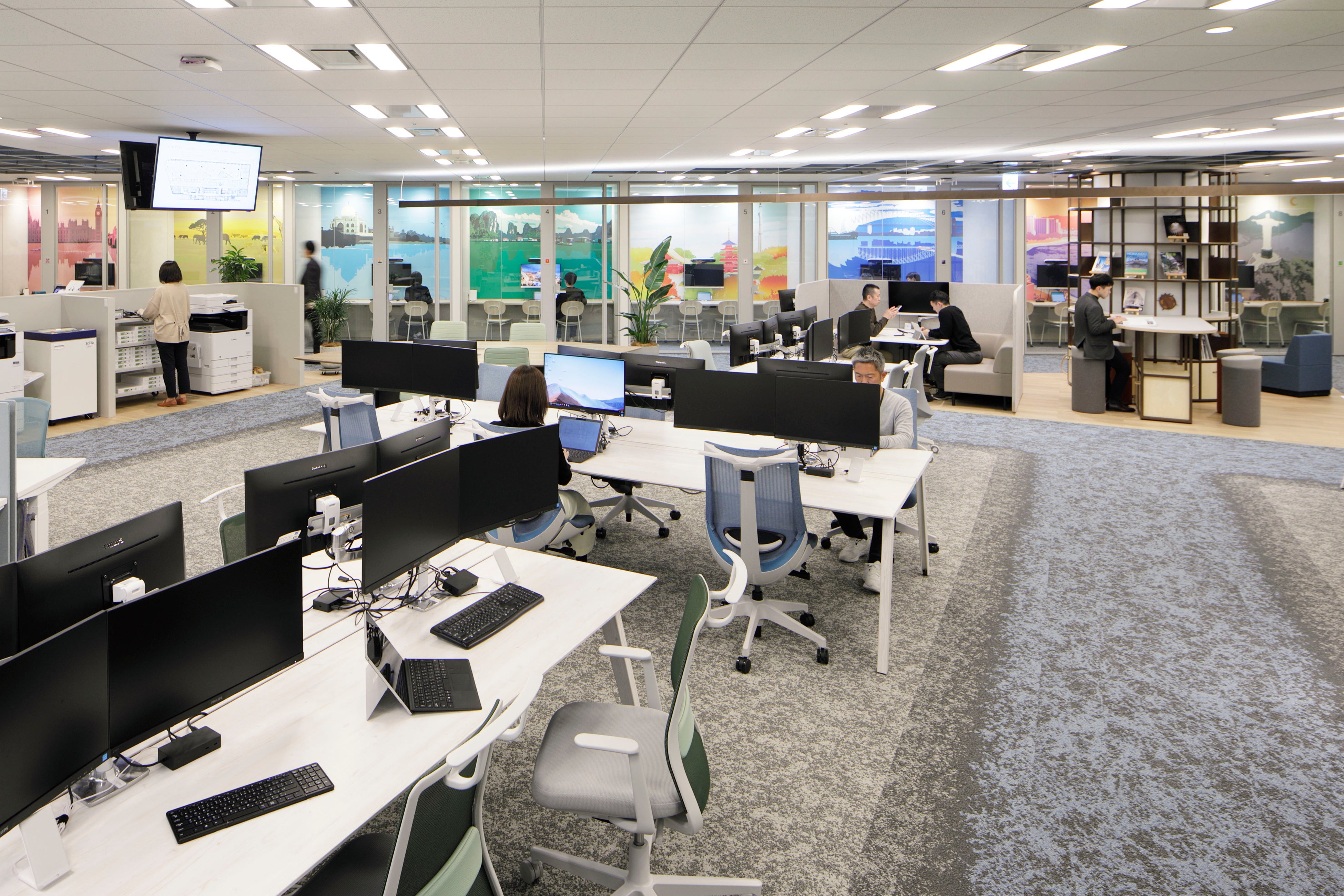 本社オフィスのリニューアルを踏まえ、東京オフィスにおいてもコミュニケーション活性化や生産性および社員満足度の向上を目指して、リニューアル工事を実施しました。