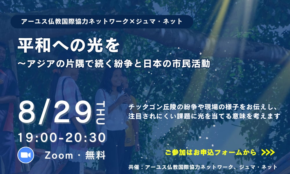 【8/29開催】オンライントークイベント「平和への光をーアジアの片隅で続く紛争と日本の市民活動」(参加無料)
