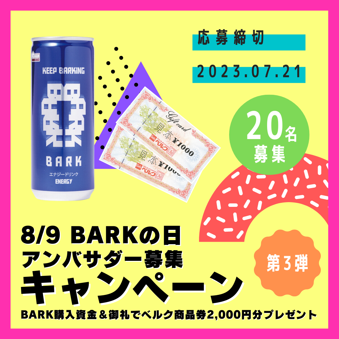 ※インフルエンサーは8月9日に「#BARK」と「#ベルク」のハッシュタグをつけ、「@belc.jp」にタグ付けをしてBARKの写真・動画を投稿してください。