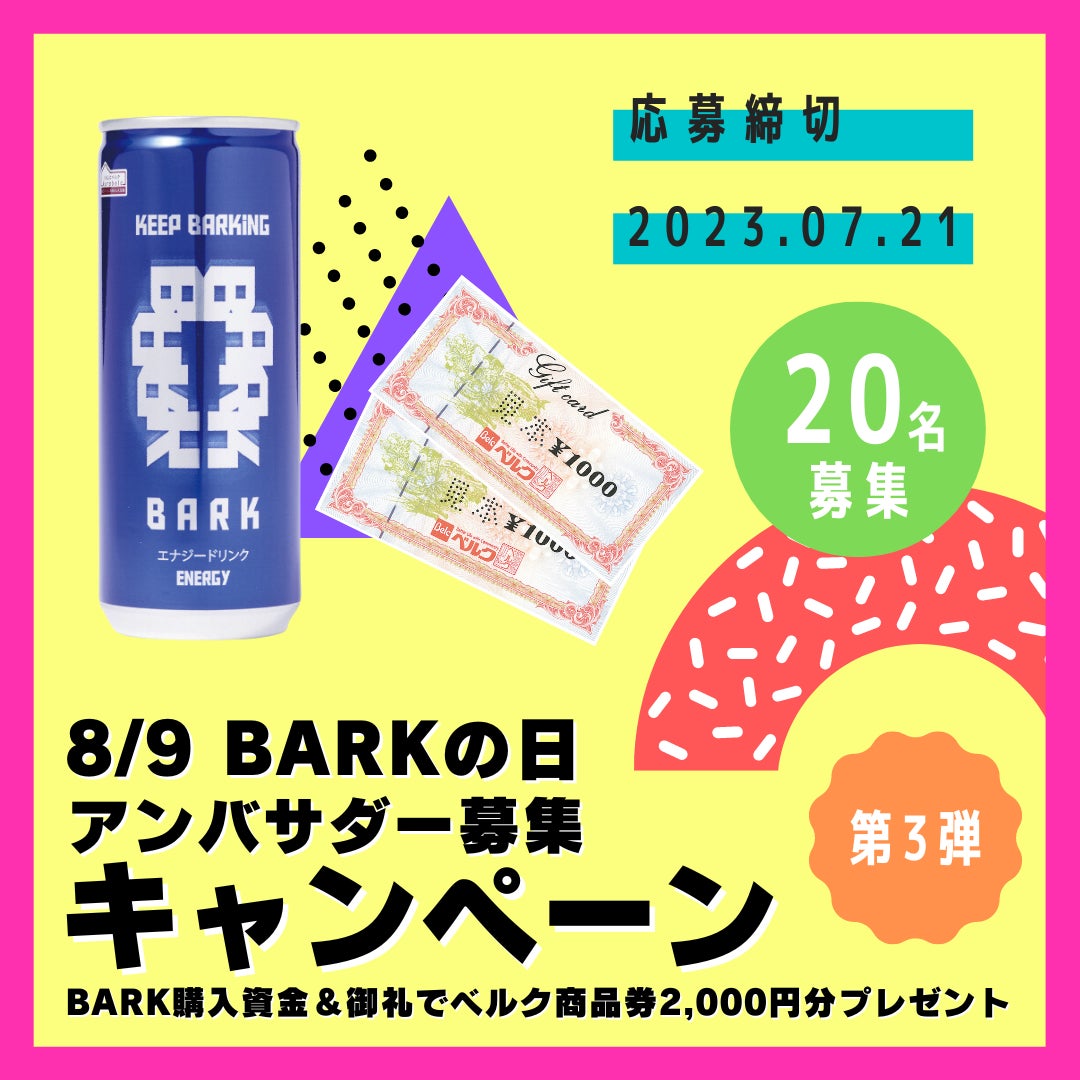 2024年7月8日(月)~7月21日(日)までの期間中、ベルク公式Instagramアカウント(@belc.jp)をフォローのうえ、指定の投稿に「BARKインフルエンサー応募」をコメント。インフルエンサー当選者にはBARK購入資金としてベルク商品券2000円分をプレゼントいたします。