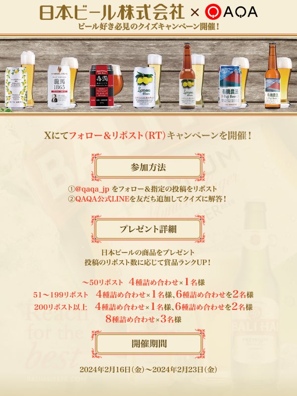 日本ビール株式会社×『QAQA』 クイズキャンペーン詳細