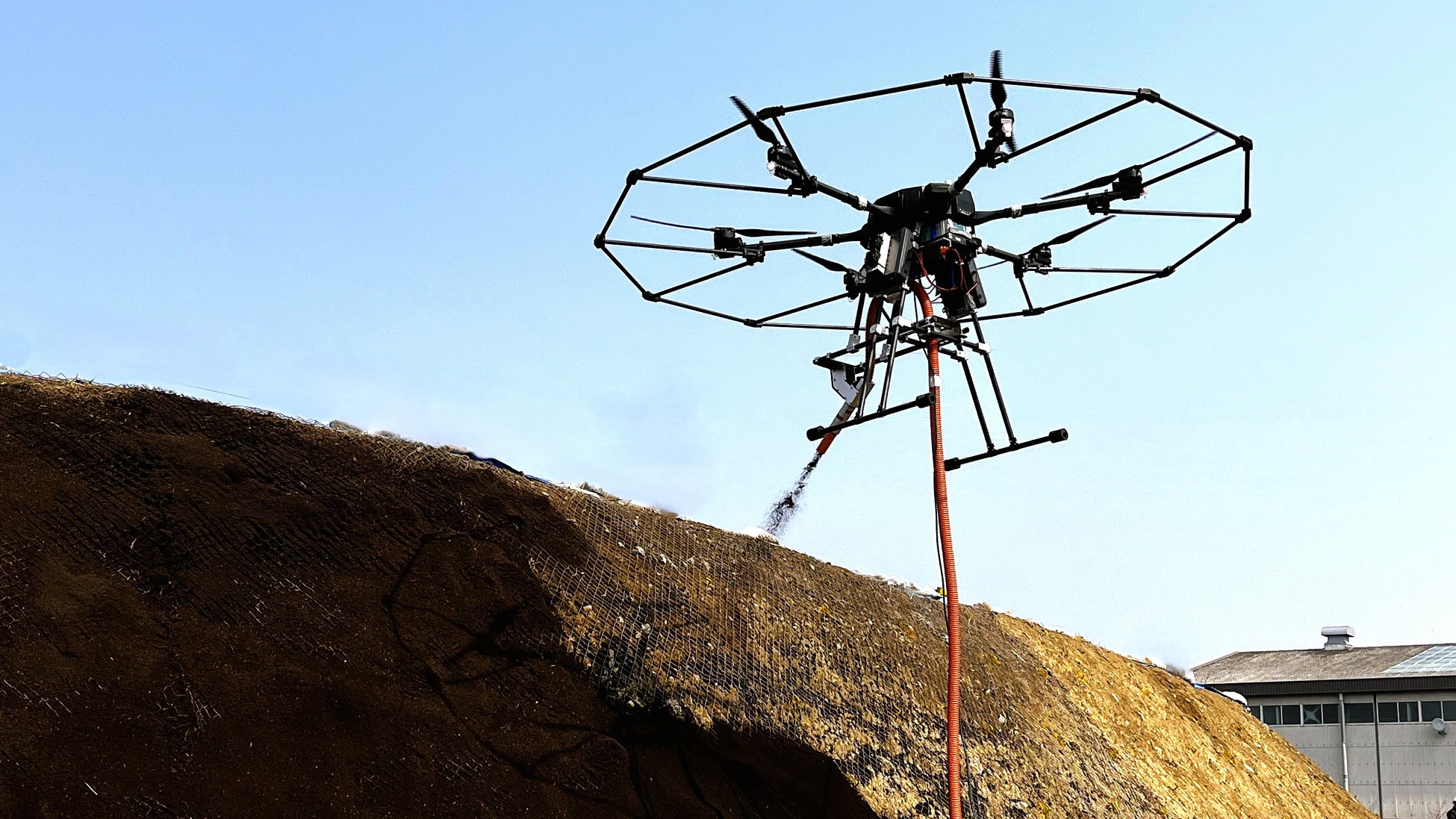 東興ジオテックとエアロセンス、国内初となる法面吹付用の大型有線給電ドローンと吹付工法を共同開発