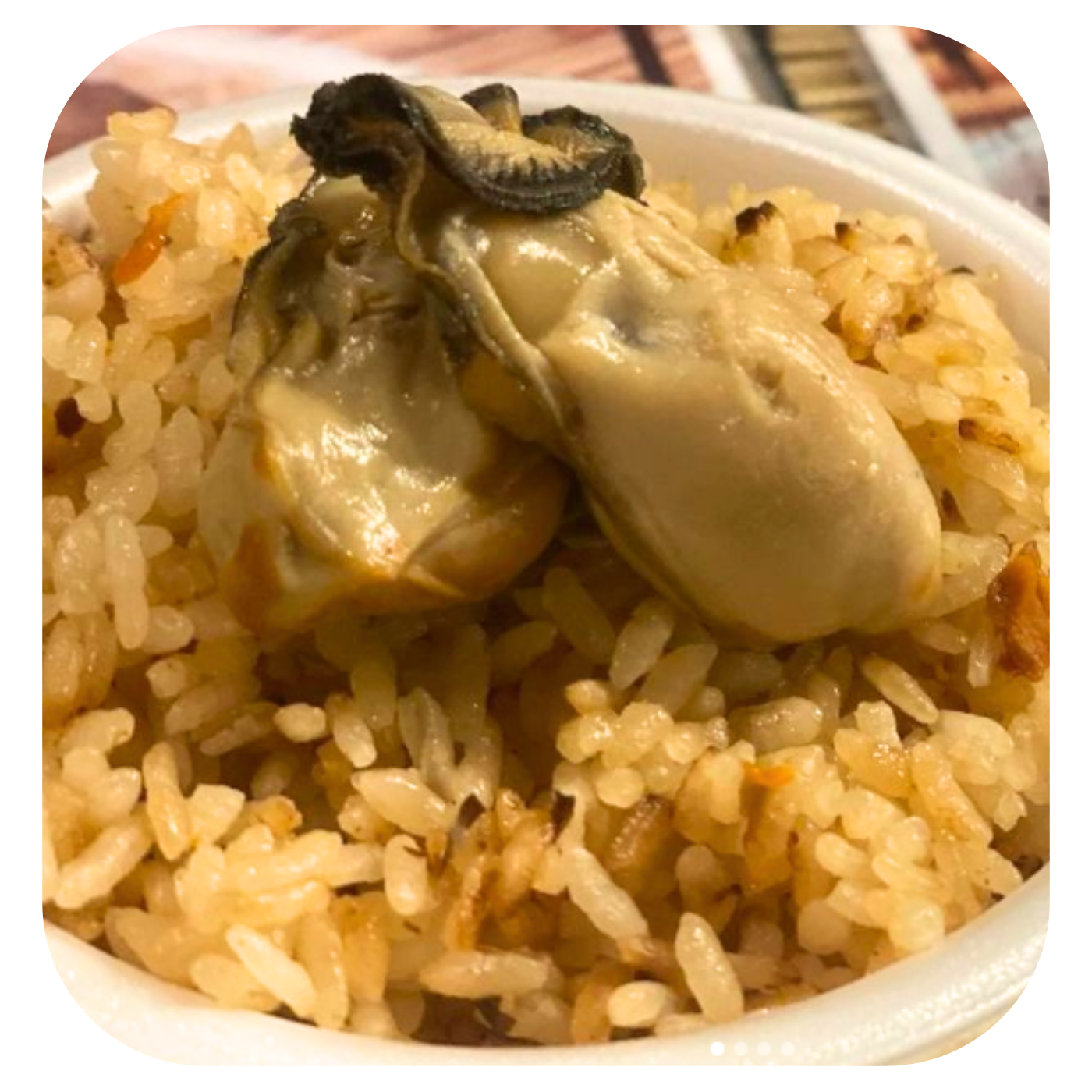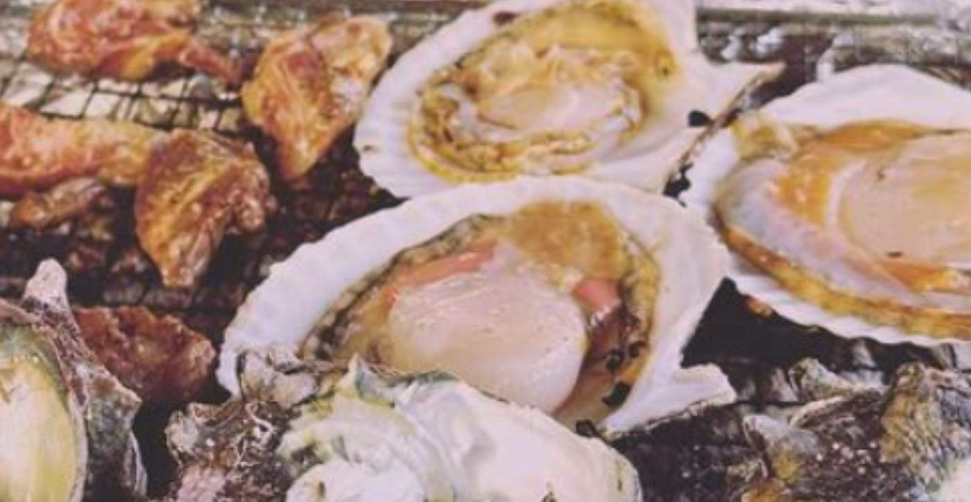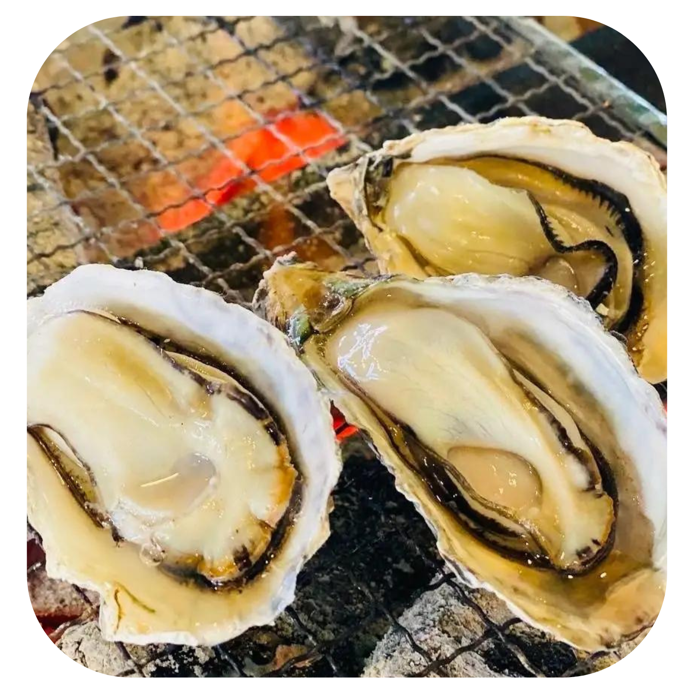サザエ/ホタテ/ホッキ/エビ/イカなどの魚介類はもちろん、牡蠣フライ/牡蠣ごはん/牡蠣汁/牛串/牛タンつくね/フランクフルト/フライドポテト/コーンバターなどの多種多様なフードやおつまみ、ドリンク(ソフトドリンク300円アルコール500円〜)も用意。※品切れの場合あり