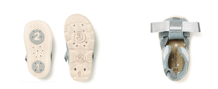 子ども自身での履きやすさに配慮した「アウトサイドストラップ」や、子どもの健やかな足の成長を育むインソール「ウィンドラスソーサー ®」など IFME のオリジナル機能を搭載しています。