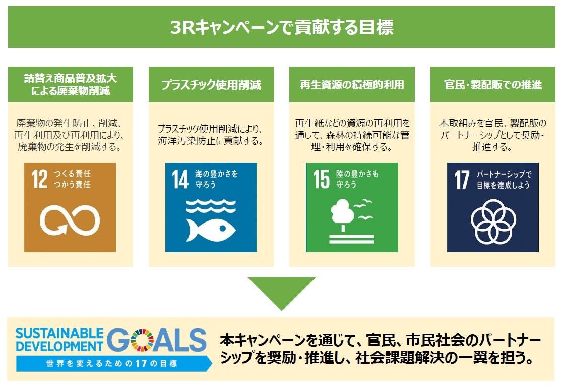 選ぼう!3Rキャンペーンの取り組みは、日々のお買物を通じて、消費者一人ひとりが3R※2や資源の大切さを認識・共感し、 それを日頃の消費行動(商品選択)へつなげていただくことを目的としたもので、ウエルシアは、2020年より参加を開始しています。