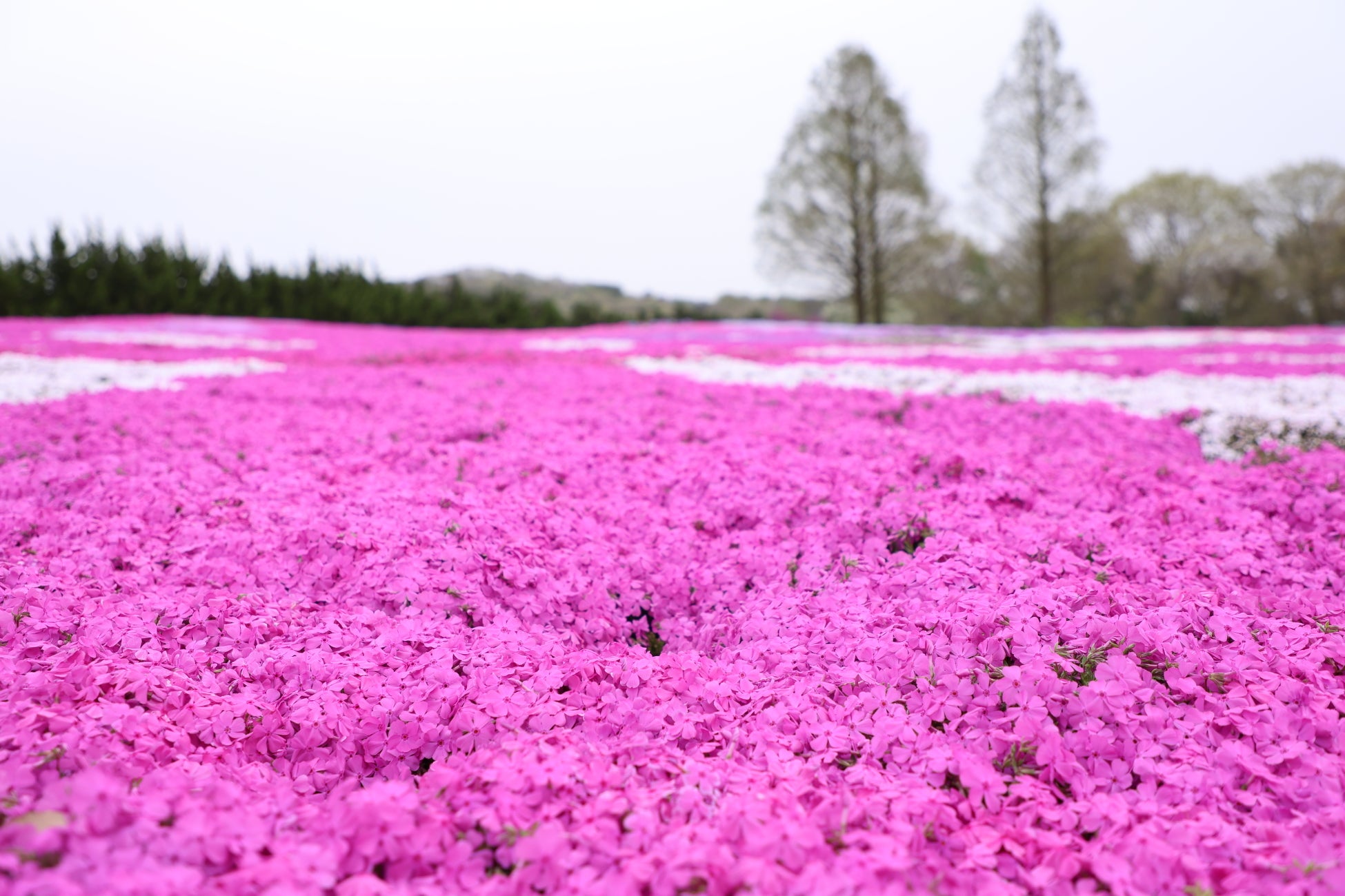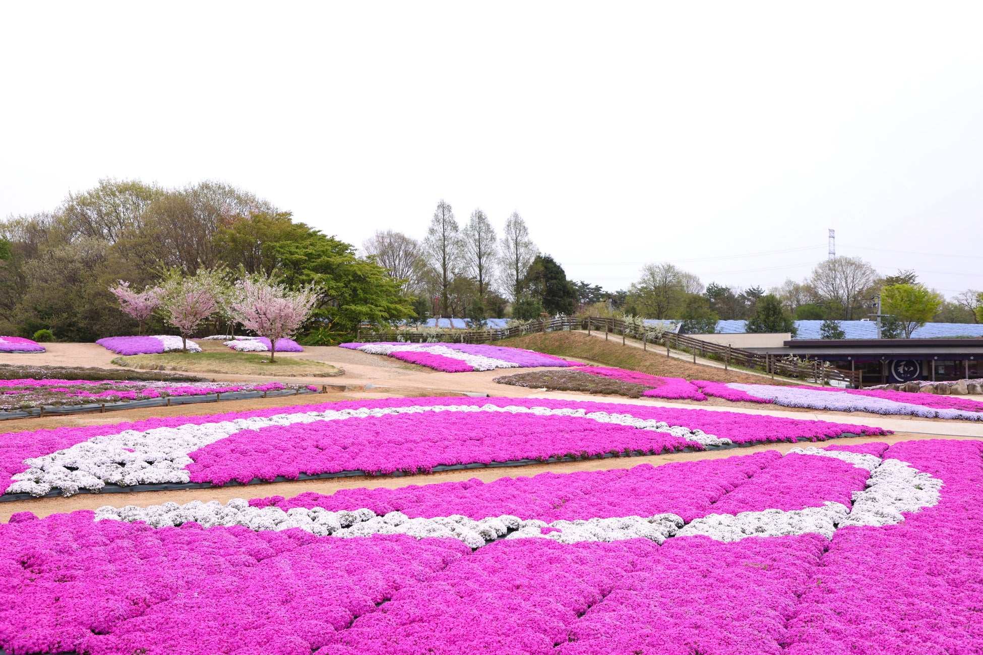世羅高原農場から車で約25分の場所にあるグループ施設「Flower village 花夢の里」で開催中の「芝桜とネモフィラの丘」。西日本最大級40,000㎡の丘に45万株の芝桜と100万本のネモフィラが広がるピンクとブルーの花の世界をお楽しみください。