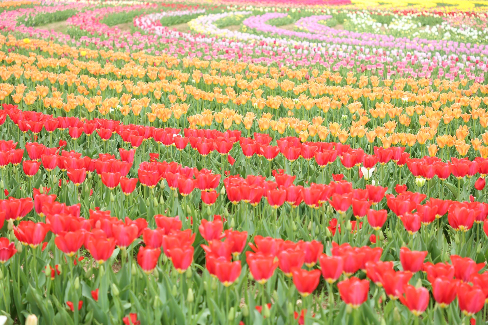 自慢の絶景、チューリップで描く日本最大級の「花絵」はこれから咲きそろい、見頃本番を迎えます。公式サイトの開花情報とあわせてご確認ください。