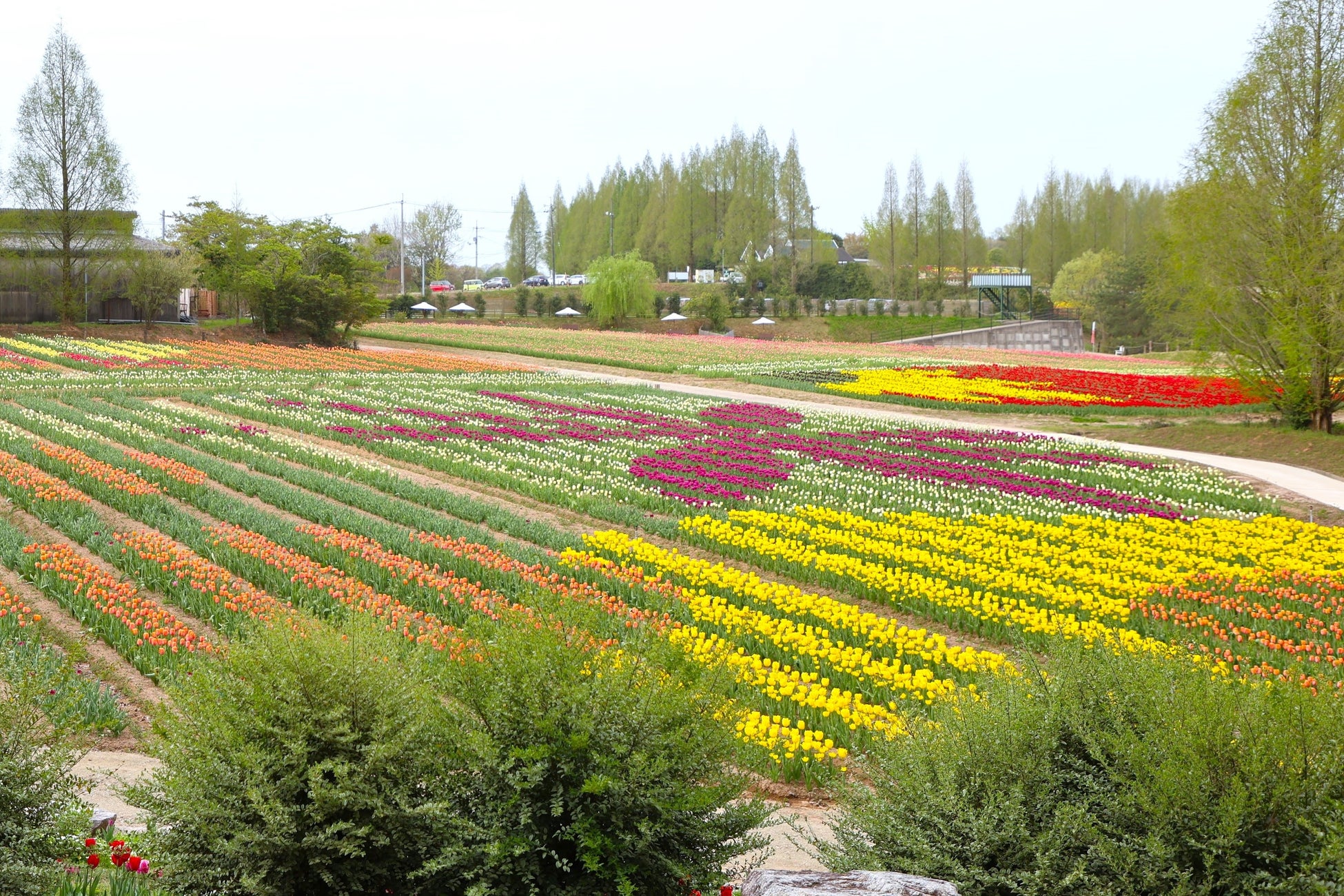 65,000㎡に200品種75万本のチューリップが咲く世羅高原農場「チューリップ祭」は現在見頃を迎えています。