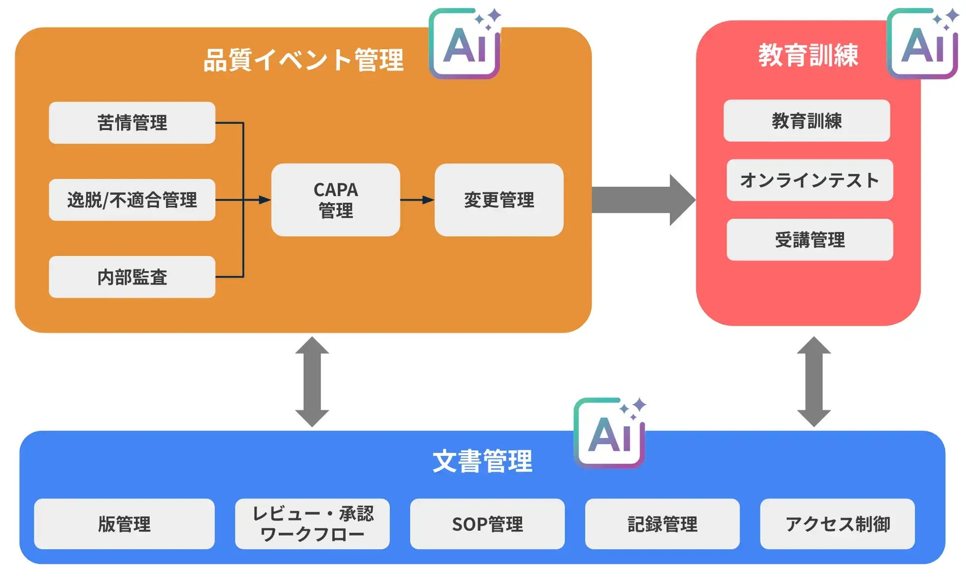 ・規定・SOPから苦情処理表などの記録まで、全て電子化。