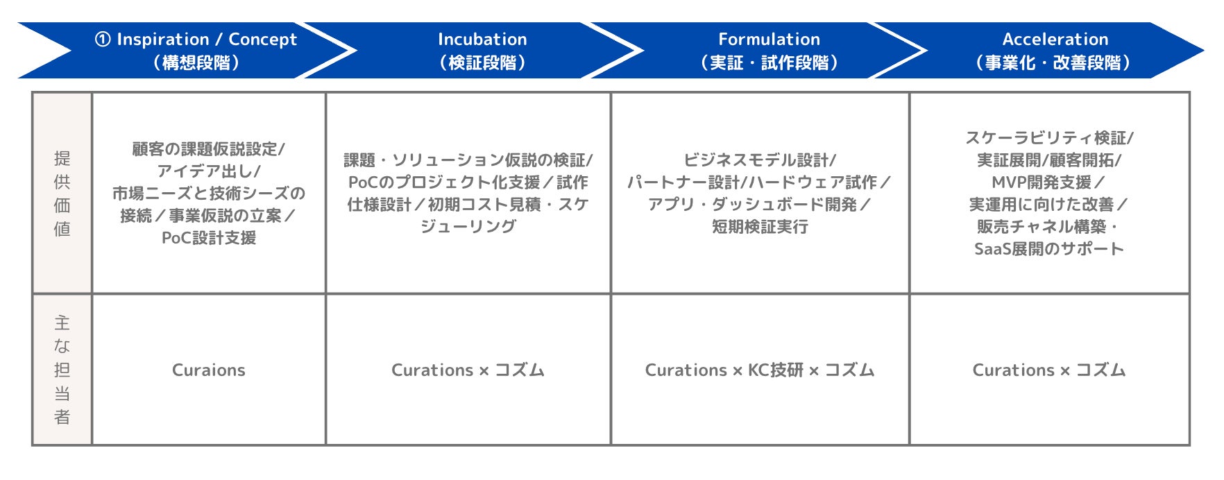 また両社は、以下の通り事業構想から市場実装までのフェーズに応じた支援を共同展開します。