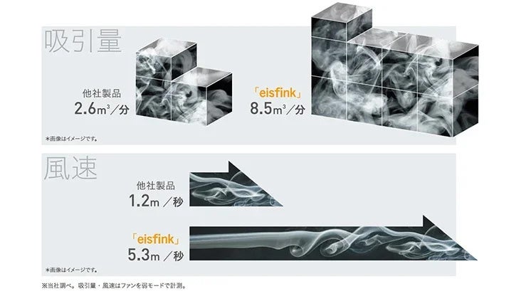 ワゴン本体で油煙や油脂、水分を含んだ空気を浄化します。その吸い込み能力は一般的な無煙調理ワゴンの約3倍。設置場所には排気設備の必要がないため、フードがない場所でも調理が行えます。