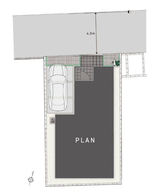 幅員4mと5mの道路の角地に位置し、駐車場を合わせることで更なるゆとりを生み出し、あたたかい陽だまりが心地よい暮らしを演出してくれます。