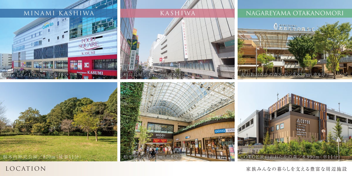 JR常磐線「南柏」駅・「北小金」駅の両方が利用でき、徒歩圏内に様々な商業施設が揃う利便性の高い周辺環境。柏や流山おおたかの森などの魅力的なエリアにもアクセスが良く、毎日の暮らしを楽しめる快適なロケーションとなっています。
