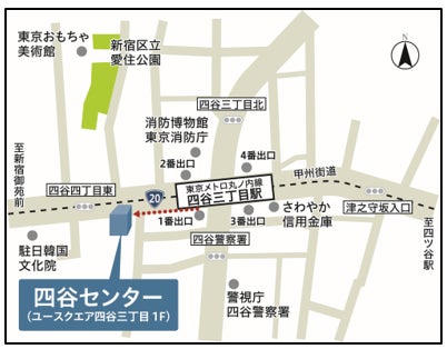 四谷センターは、東京メトロ丸ノ内線「四谷三丁目」駅より徒歩2分、新宿通りに面した視認性の高い1階路面に出店いたします。四谷三丁目駅は、新宿駅・四ツ谷駅という2つのターミナル駅の中間に位置する通勤・通学等に便利な駅で、周辺には新宿御苑などの緑豊かな公園や、大学病院もあるなど、都会の利便性と住環境を兼ね備えたエリアです。