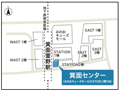 箕面センターは、大阪メトロ御堂筋線と直結し大阪中心部との交通利便性も高い、北大阪急行電鉄の2024年3月23日(土)に開業した新駅「箕面萱野駅」より徒歩1分、新駅の開業と同時にオープンした、みのおキューズモールSTATION2棟の1階に出店いたします。