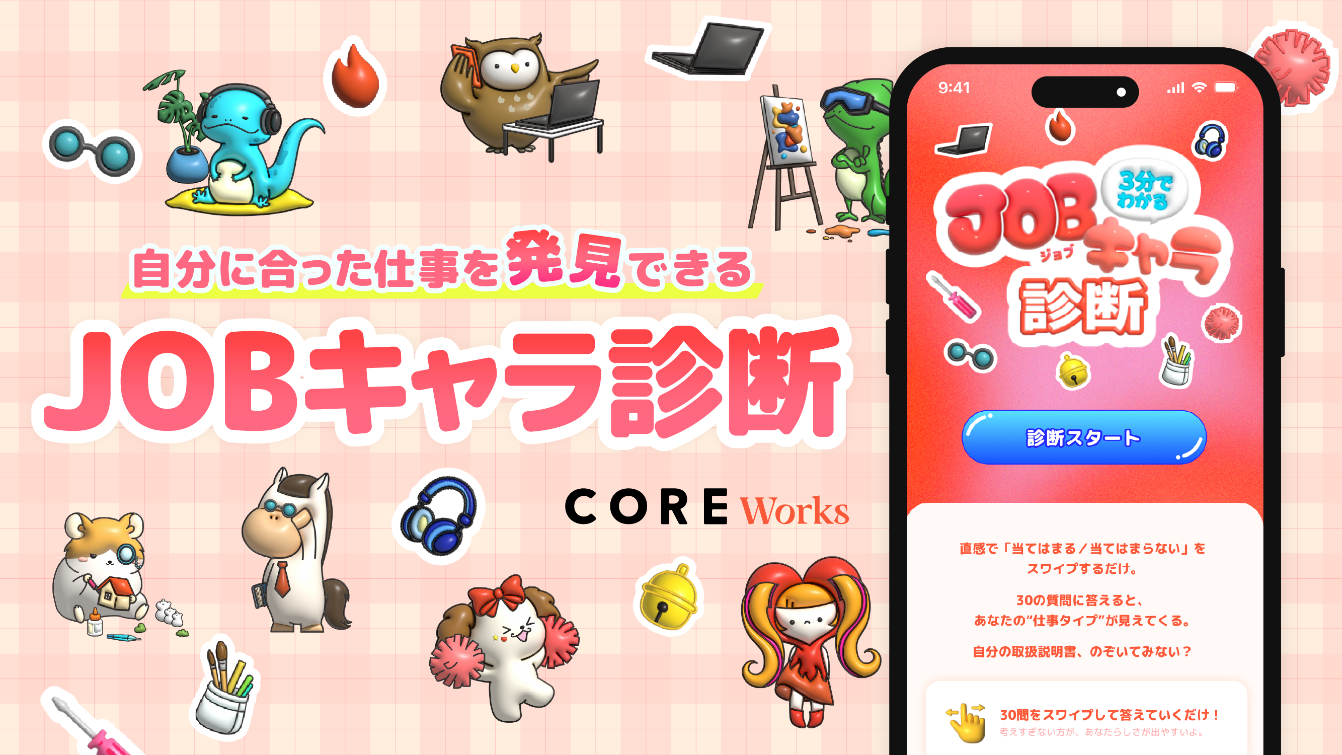 働く女性の「次の一歩」を叶える転職サポートサービス「CORE Works」を運営する株式会社COREは、自分に合った仕事を発見できる「JOBキャラ診断」をリリースしました。
