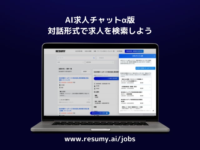 生成AIによる職務経歴書作成サービス「RESUMY.AI」を運営する株式会社Chottは、本日、生成AIを活用した新しい求人検索機能「AI求人チャットα版」のリリースを発表いたしました。