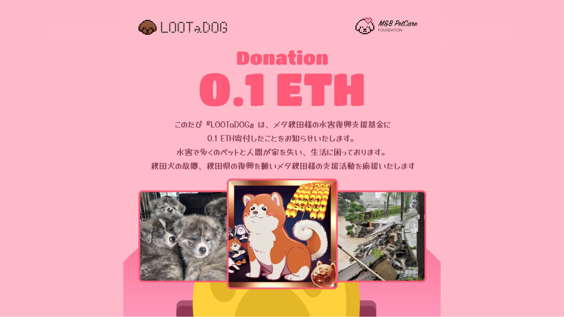 LOOTaDOG、「秋田犬NFT 水害復興支援基金」を設立した株式会社Meta Akitaへ寄付を行わせていただくことをお知らせいたします