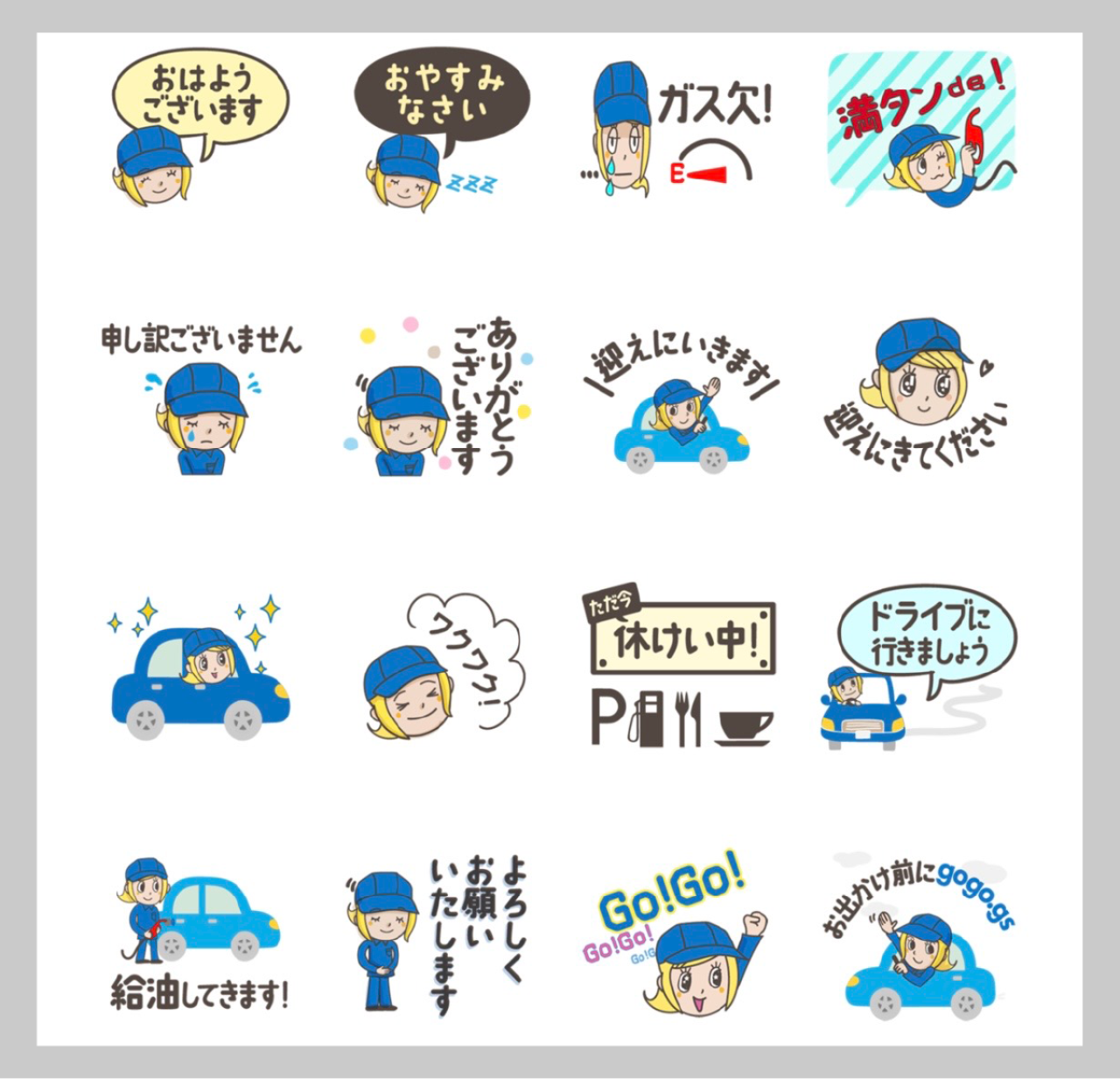 「【gogo.gs】ガソリンスタンドの女の子 」は、全16スタンプ。