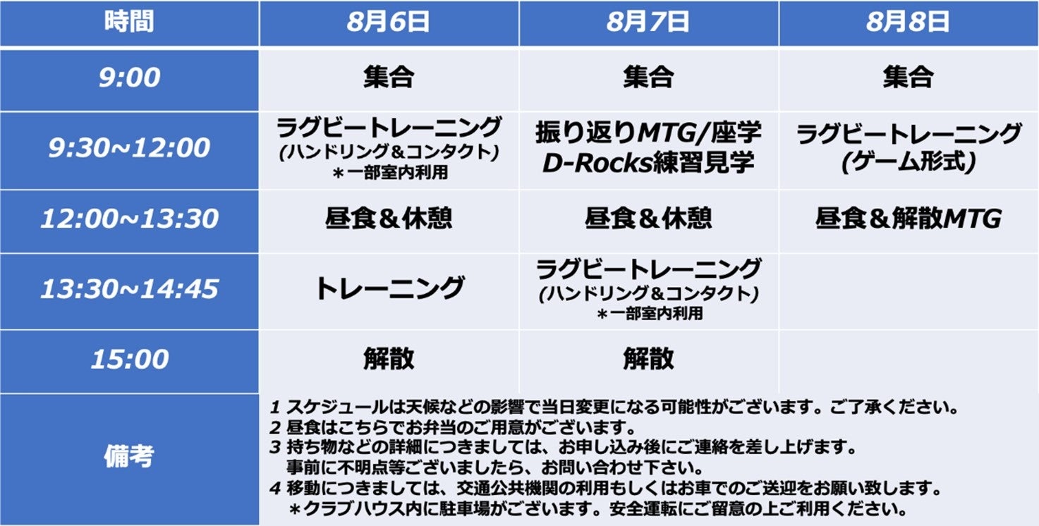 ※詳細は下記「キャンプスケジュール」をご参照ください。