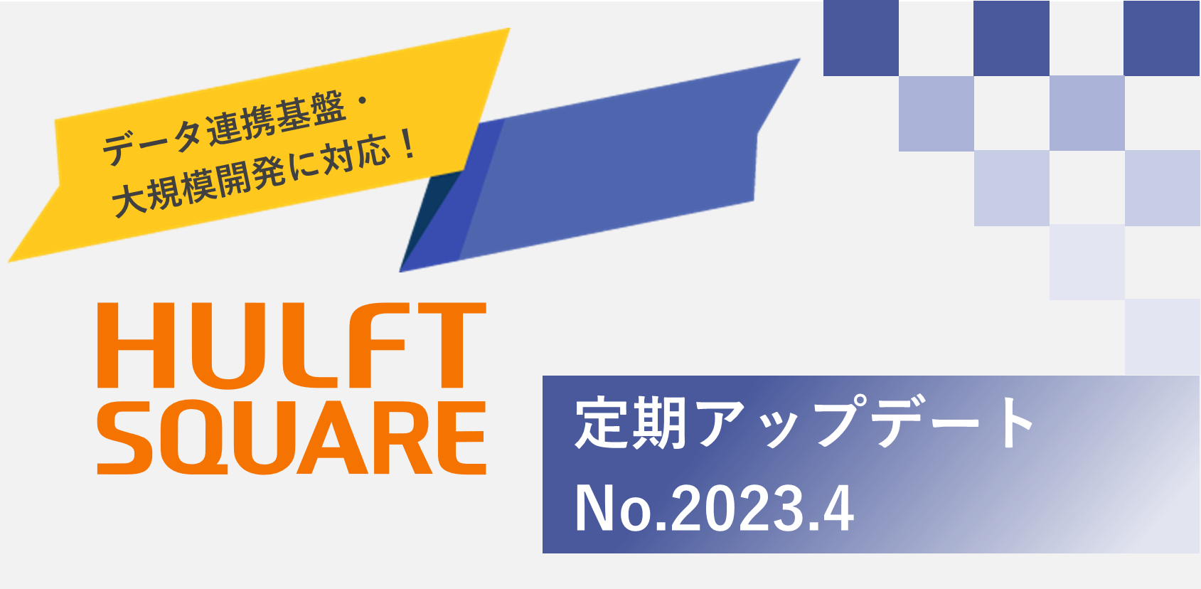 「HULFT Square」は、新機能やお客さまからのご要望を取り入れ四半期ごとに定期的にアップデートしています。グローバル展開に向けたセキュリティ強化に関する2023年5月のアップデート(No.2023.2)、お客さまの内製化促進とマルチクラウド・マルチSaaSの環境下におけるITガバナンス強化に関する2023年9月のアップデート(No.2023.3)に続き、今回のアップデートではデータ連携基盤を目的とした利用や大規模開発への対応に焦点を当てています。