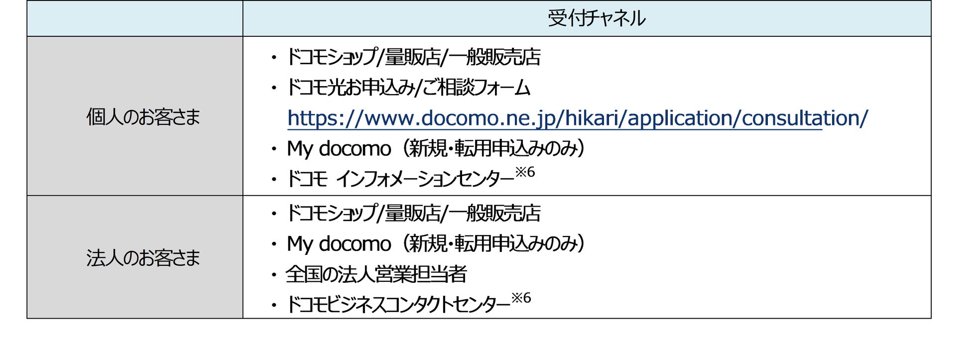 ※6 ペアとなるドコモの携帯回線契約がないお客さまは、お電話では「ドコモ光」の新規お申込みと同時に「OCNインターネット」をお申込みいただけません。