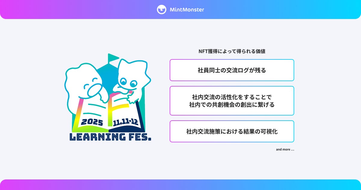 クリプトリエ、レゾナックによる社内の大規模学習イベント「ラーニングフェス」における社員同士の交流促進を目的に「MintMonster」を提供