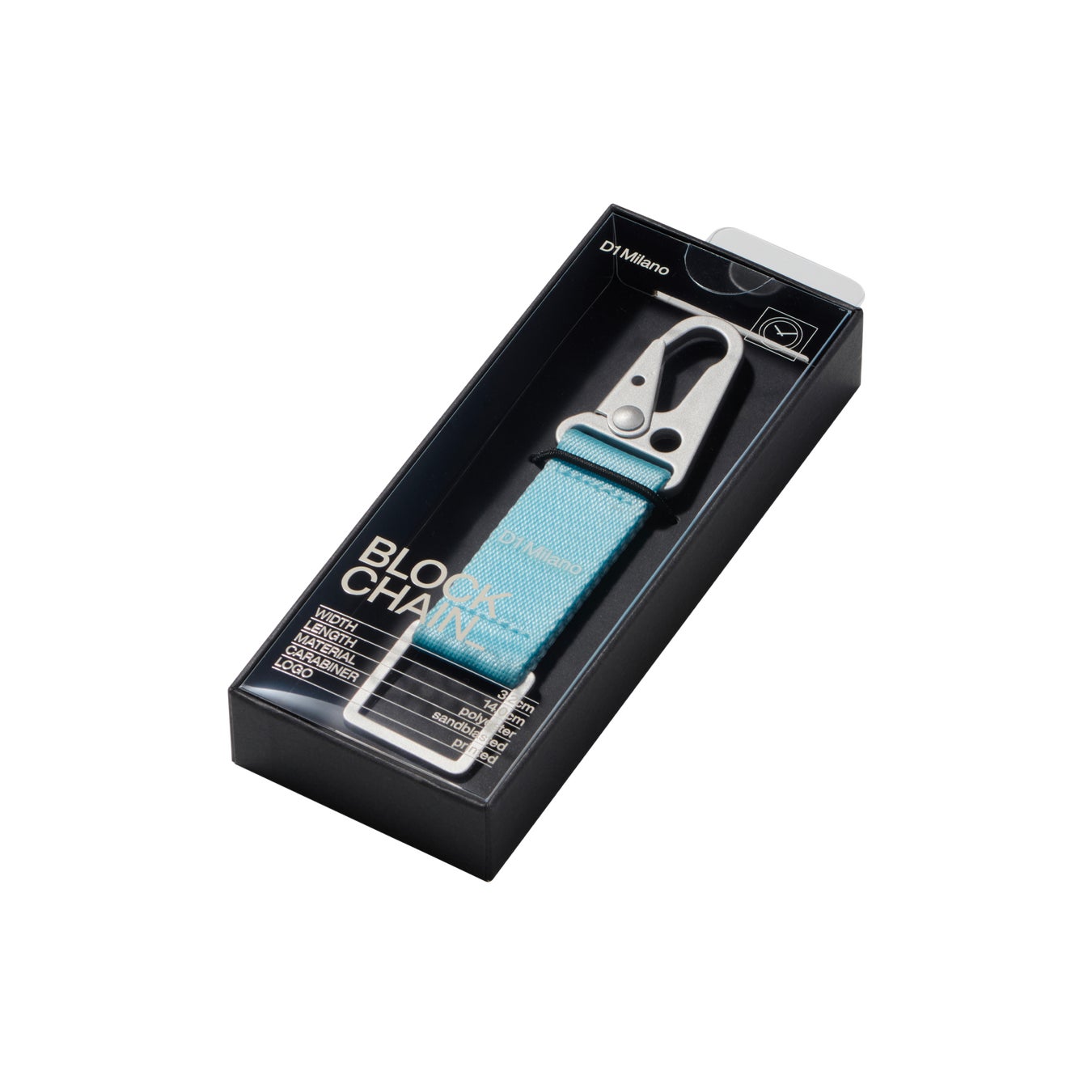 BLOCKをご購入いただいた方には、同色のナイロン&ステンレススチール製キーホルダーをプレゼント。このキーホルダーは14㎝の長さがあり、鍵やバッグにアクセントを加えるだけではなく、BLOCKと一緒に使うことで、まったく新しいコーディネートの可能性を引き出します。
