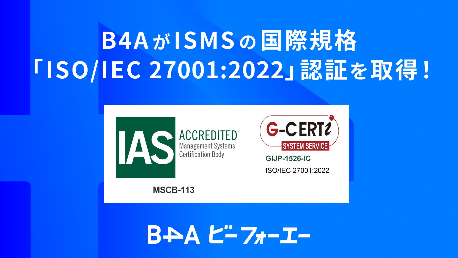 B4Aが情報セキュリティマネジメントシステム(ISMS)の国際規格「ISO/IEC 27001:2022」認証を取得