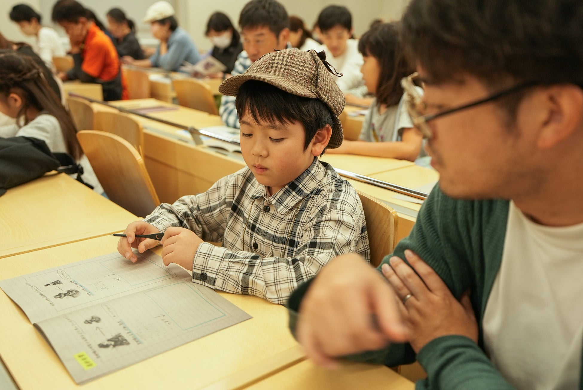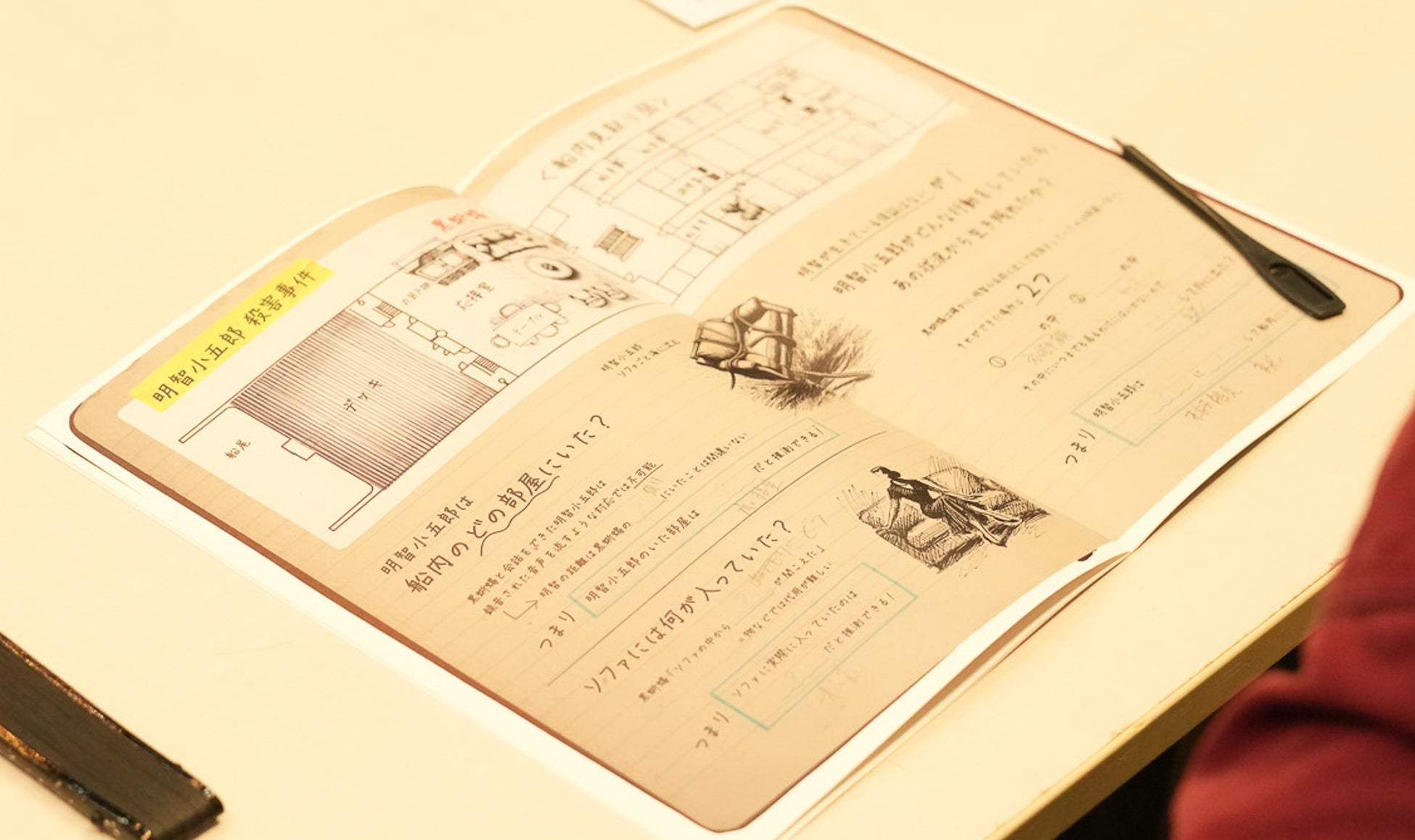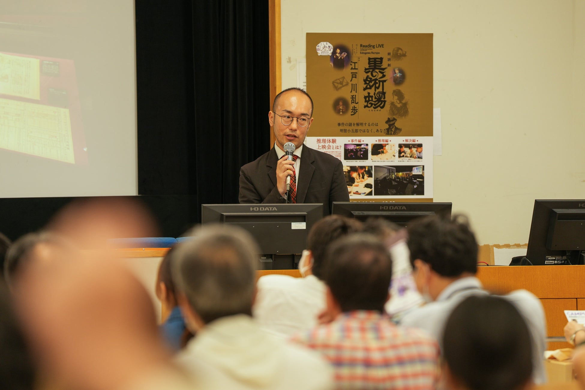 江戸川乱歩『黒蜥蜴』の朗読劇映像を途中まで鑑賞した後で、捜査資料を手掛かりに事件の謎を解明する推理体験イベントです。お子さんから大人まで幅広いお客様が来場され、会場は超満員。推理体験を楽しんでいただきました。