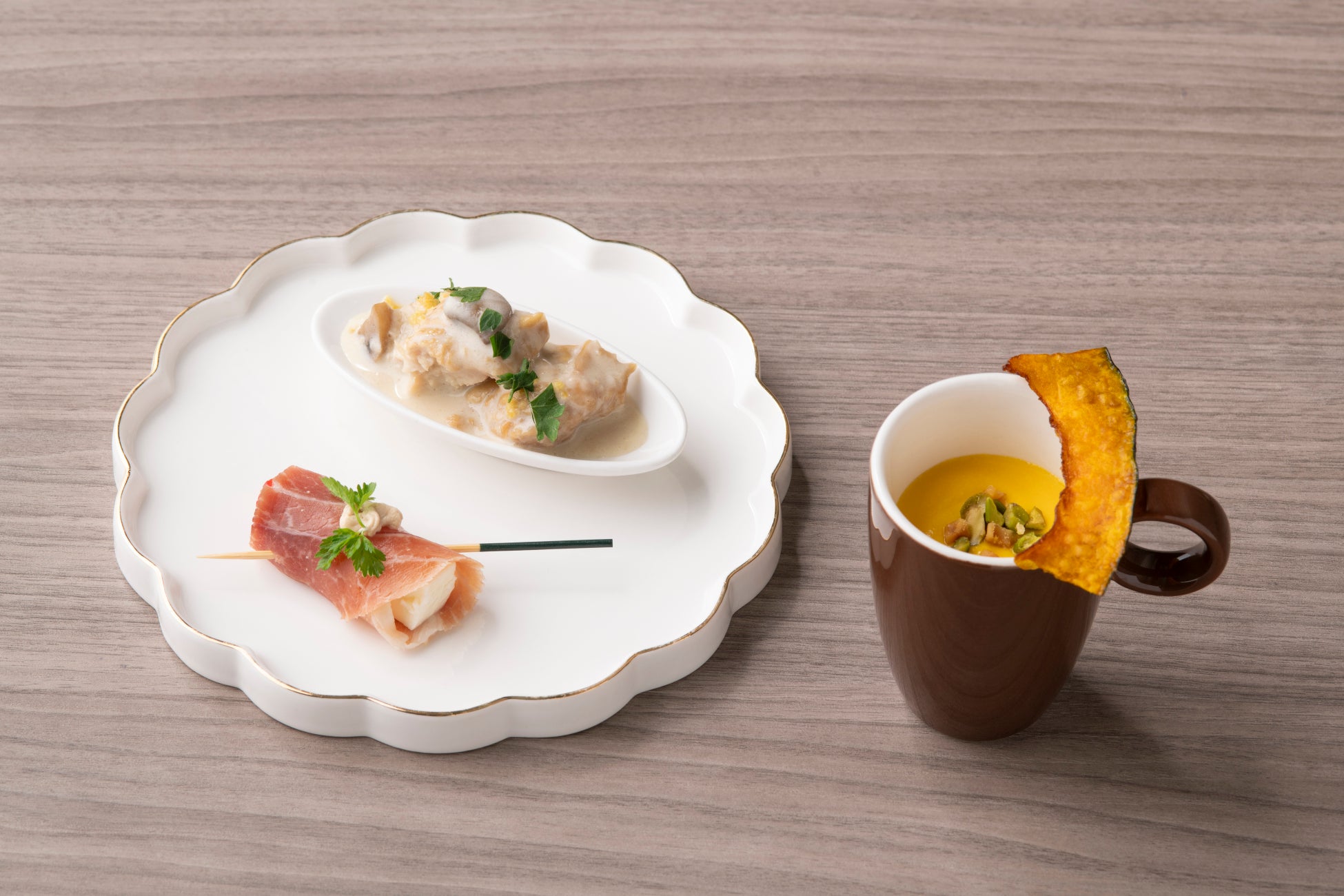「かぼちゃづくしのスープ仕立て “ヴルーテ”」(写真⑤ 右)